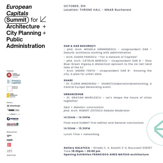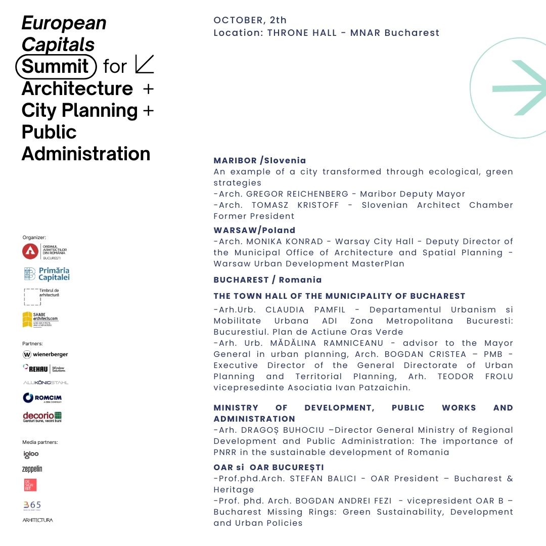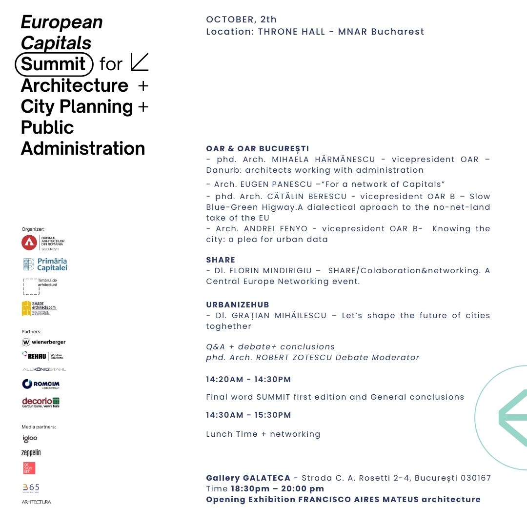 Evenimentul se desfășoară datorită colaborării generoase dintre OAR București, Primăria Municipiului București și Share Architects.