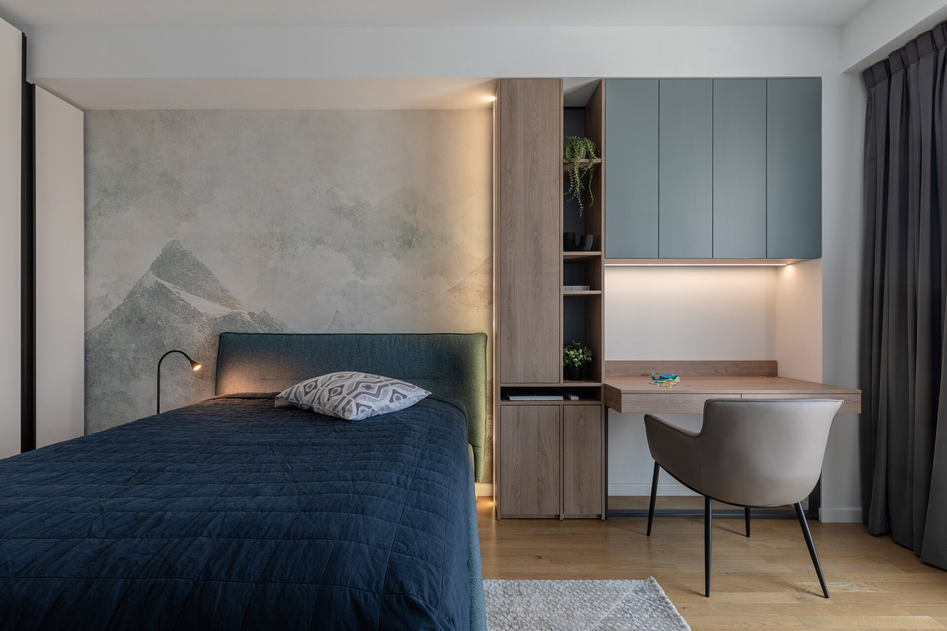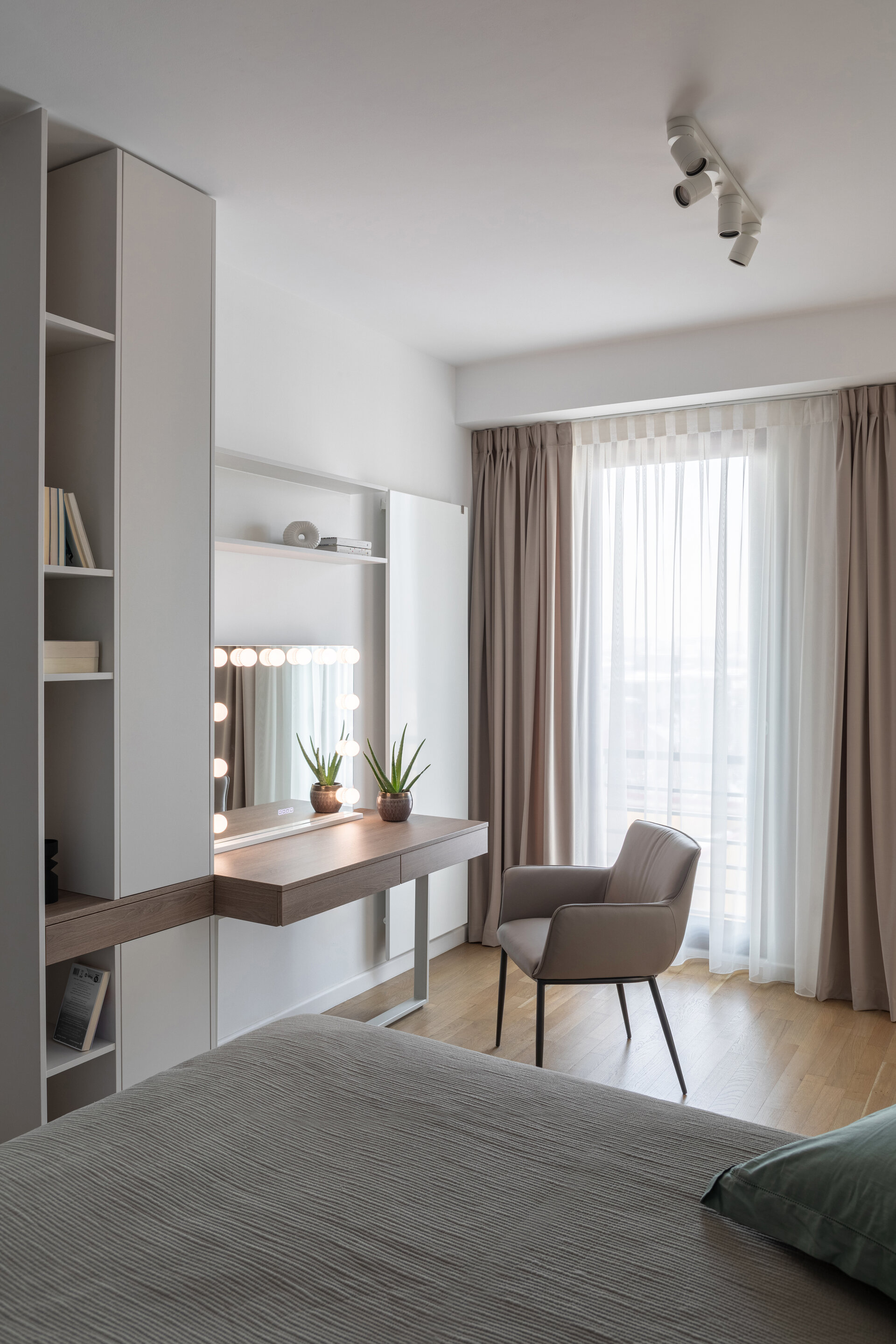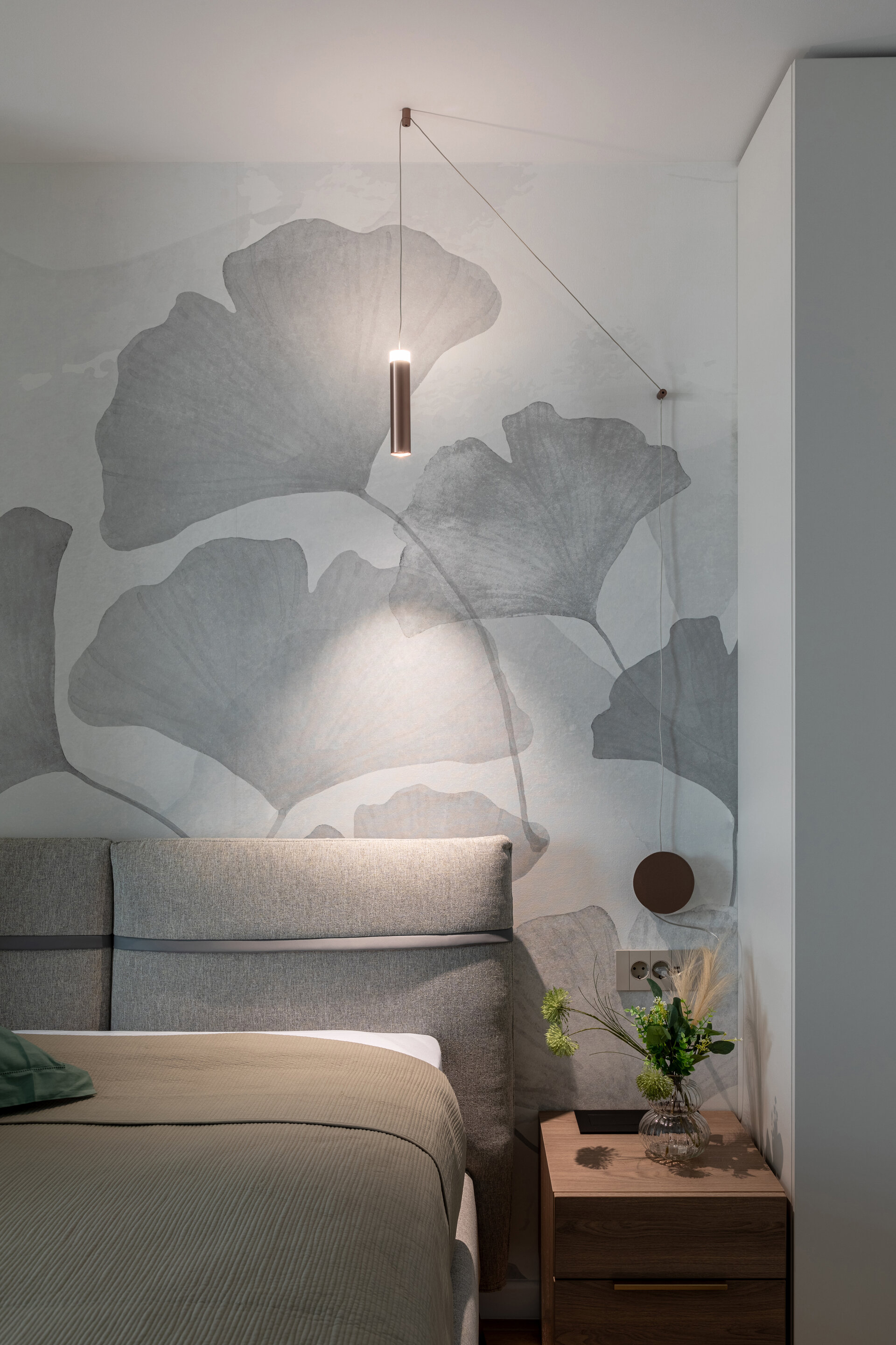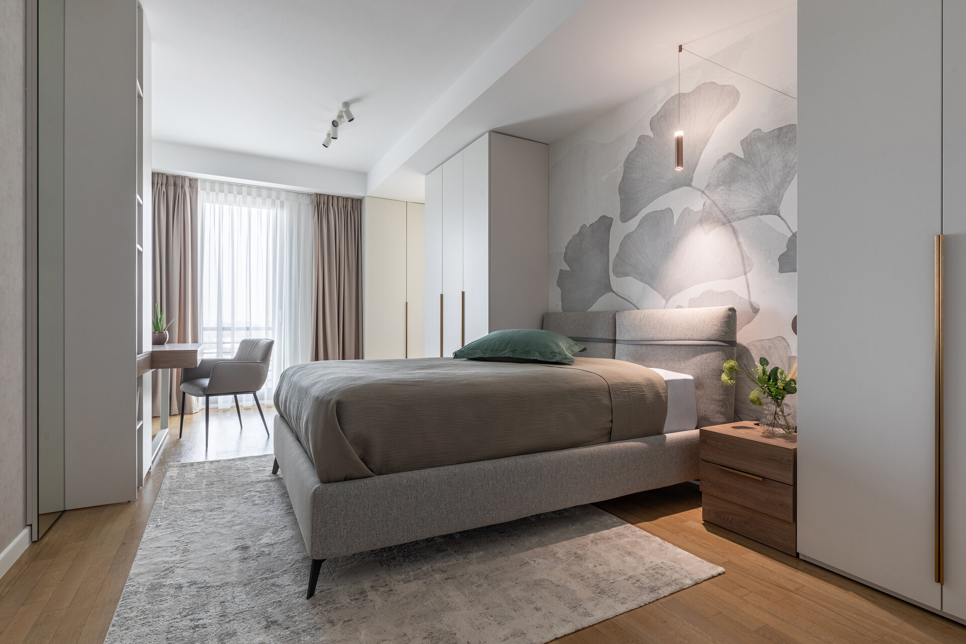 The bedrooms are designed in soft, tempered tones, with rich textiles and tactile finishes for a sensory experience of the highest quality. The minimalist approach maintains a balance between simplicity and warmth, creating an intimate personal retreat.