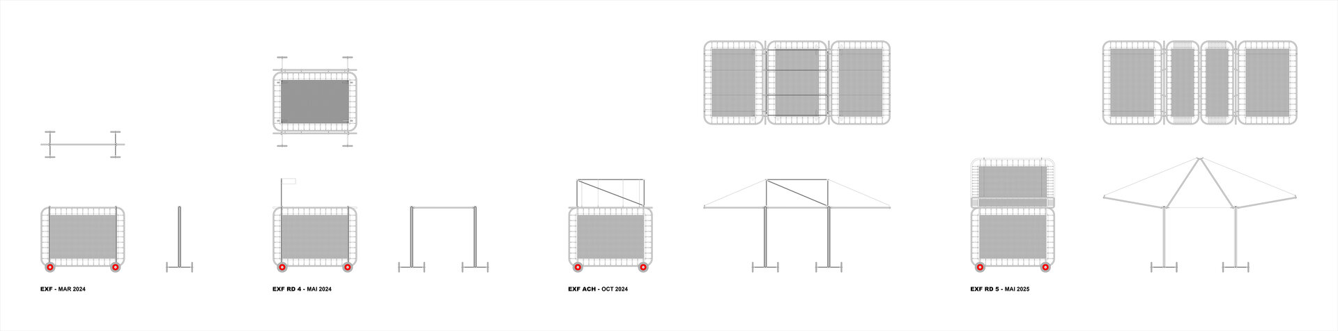 EXF_RD25 - the last in the series of mutations so far. The pavilion is to be reinstalled in a new configuration on Edgar Quinet Street in October 2025, during “Archyfest 03”.