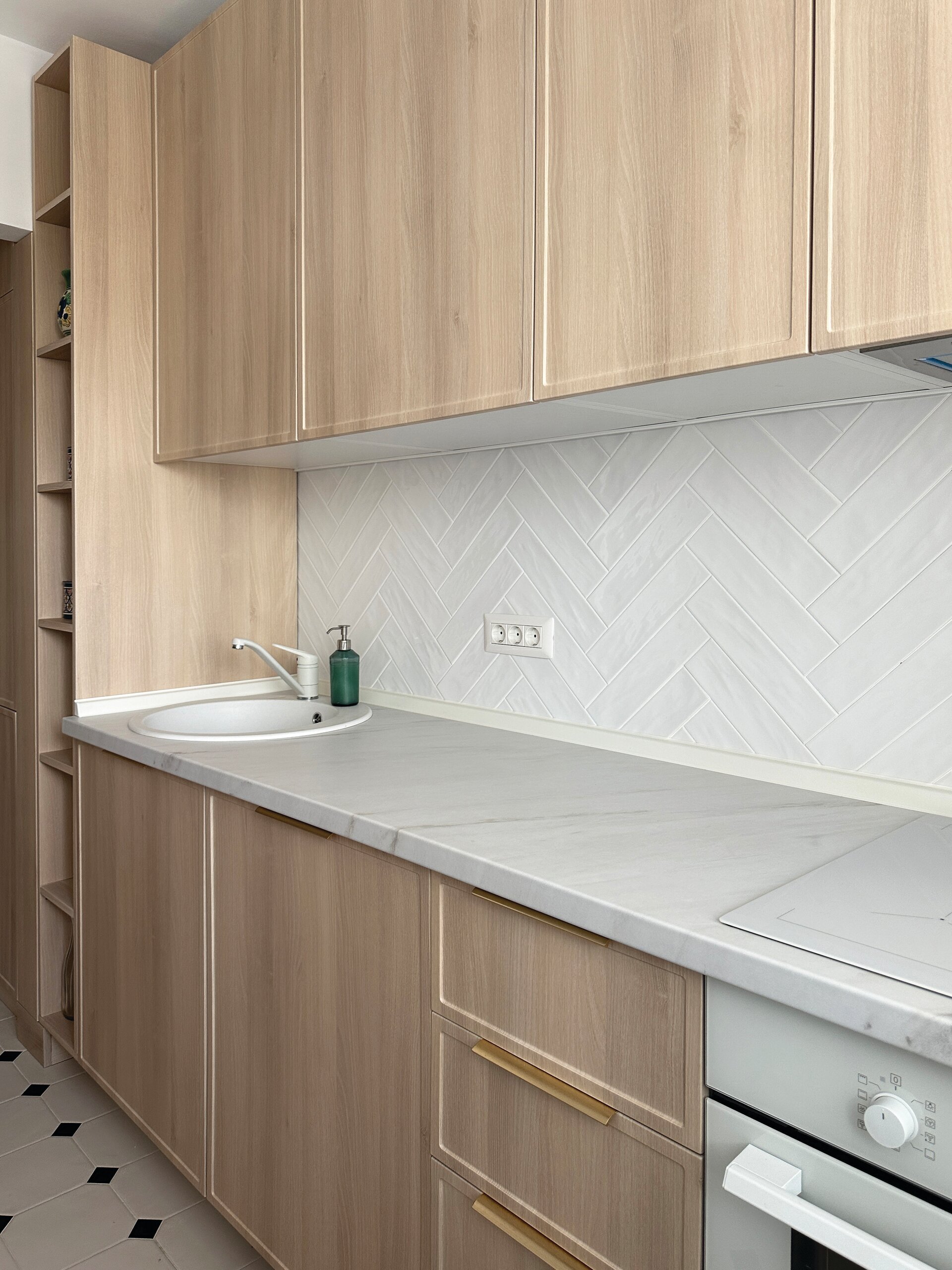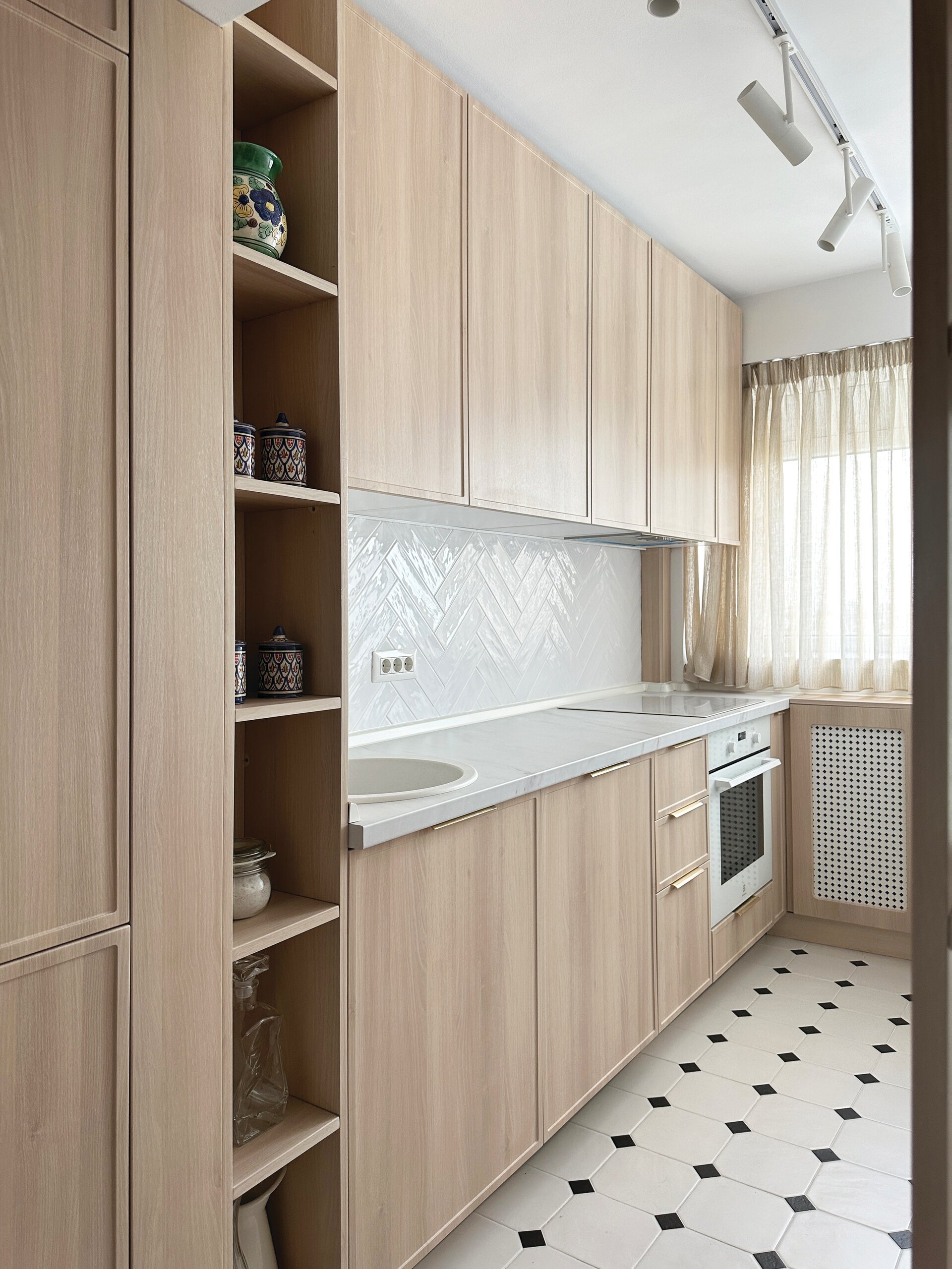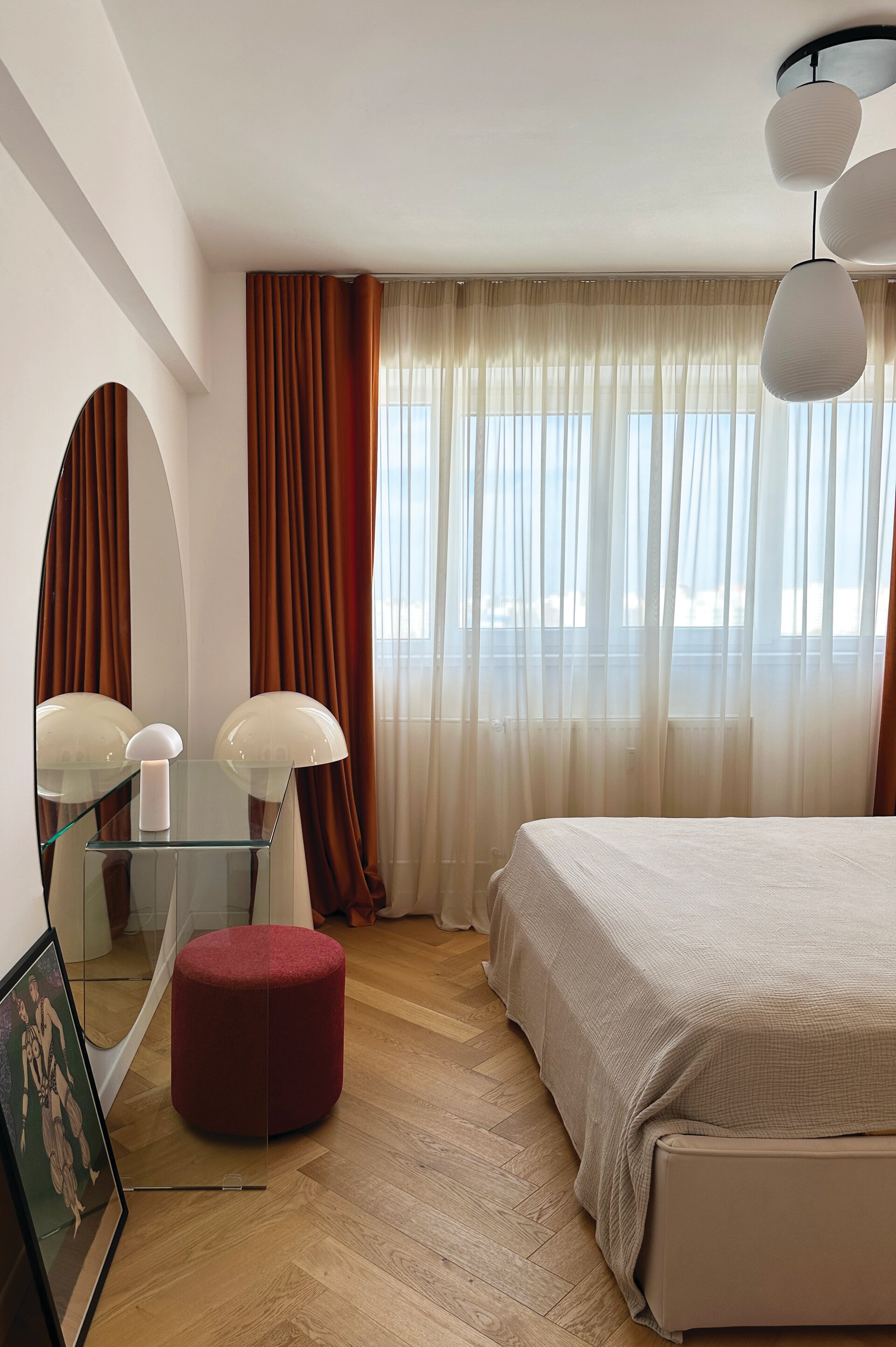 I am very pleased with the collaboration with Cristian Pătrașcu Studio, as the design process resulted in a space that fully represents me. The space optimization ideas, tailored to my storage needs, were excellent. The ceramic cladding, both in the bathroom and the kitchen, are my favorites for the personality they bring to the design. I also love the brick-red accents — a color that never goes out of style.