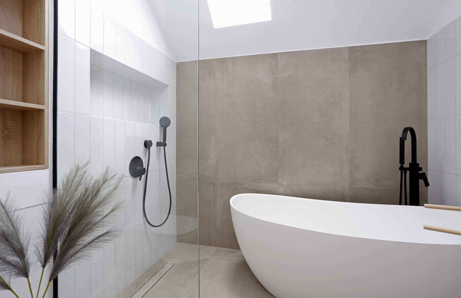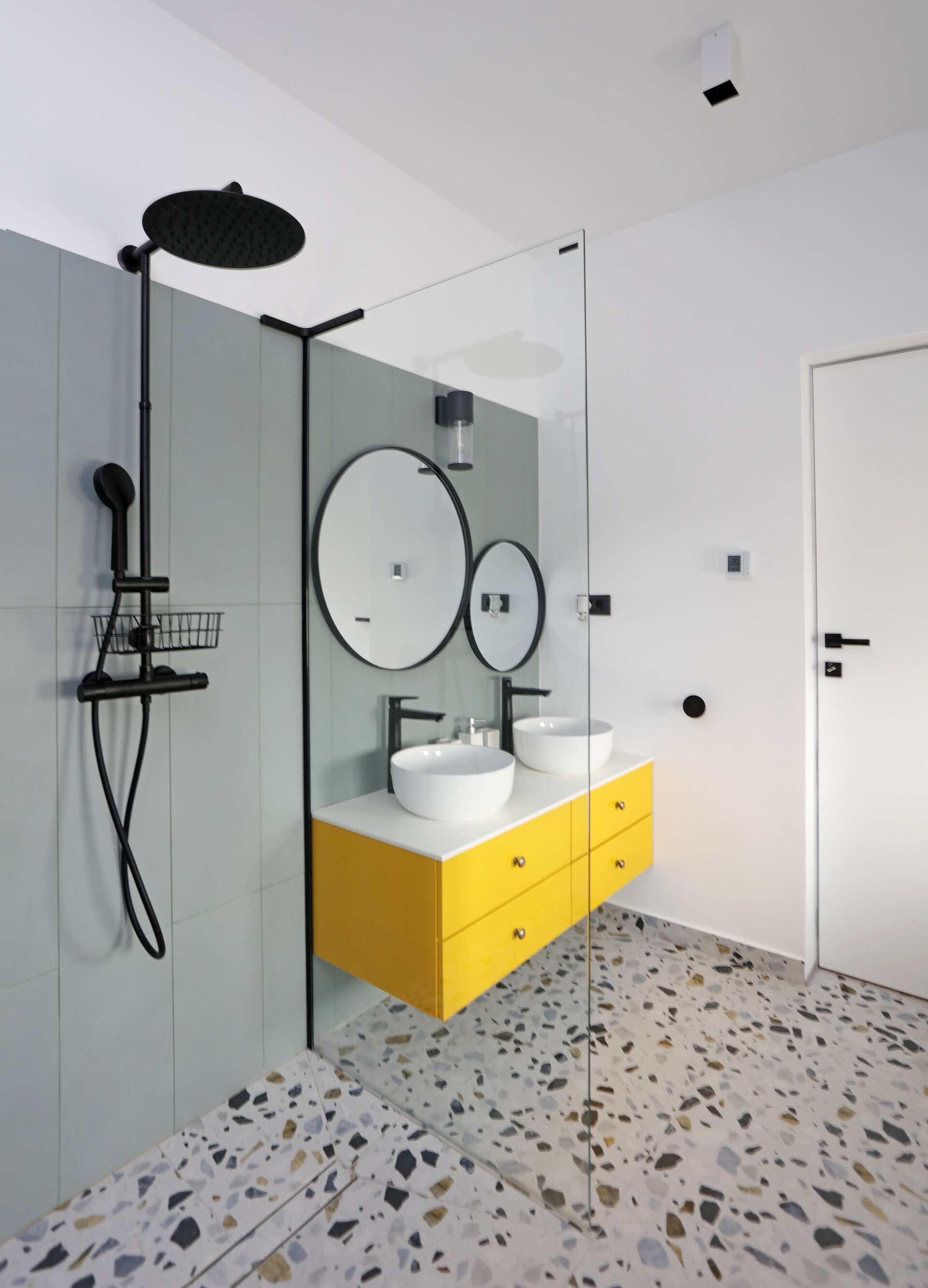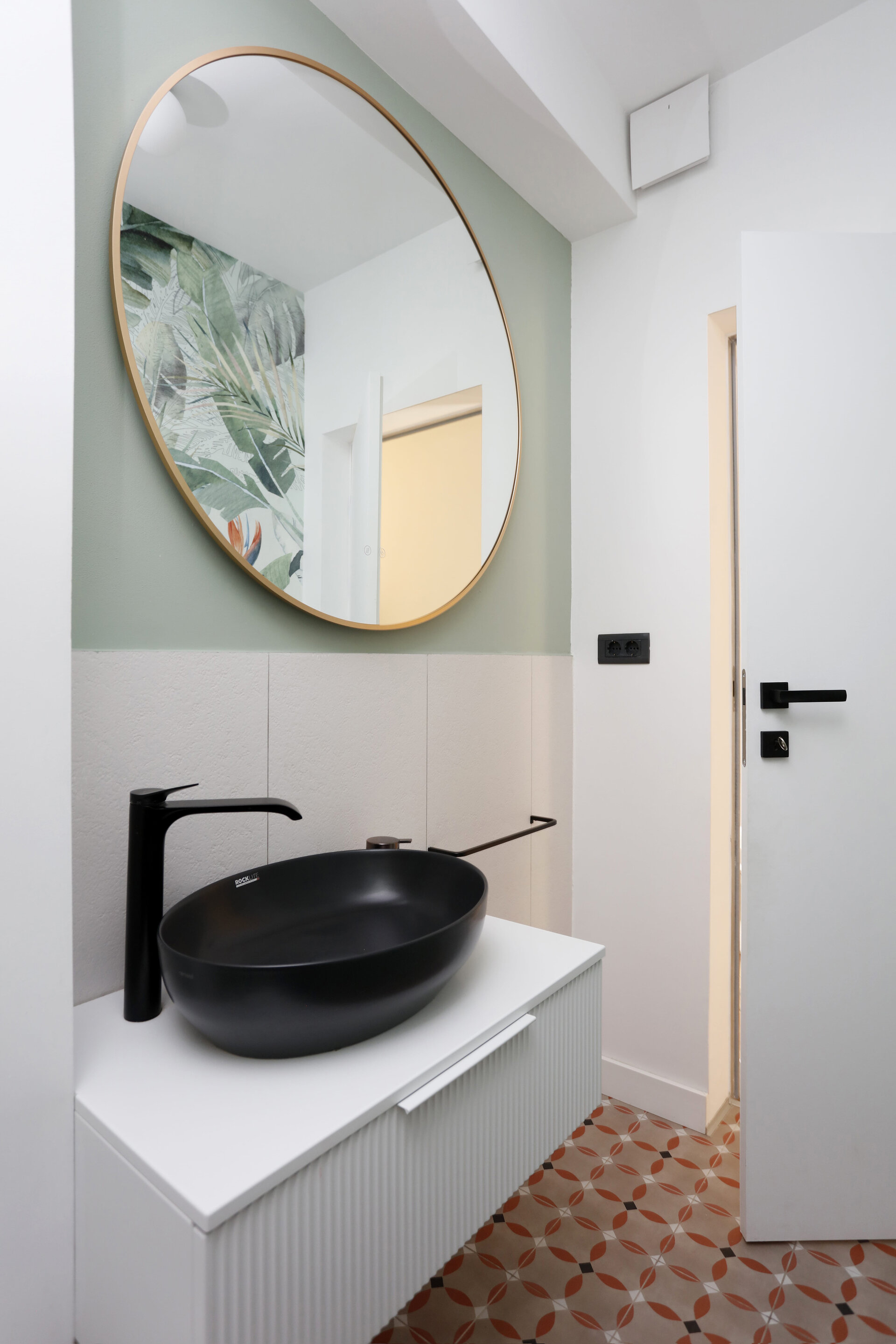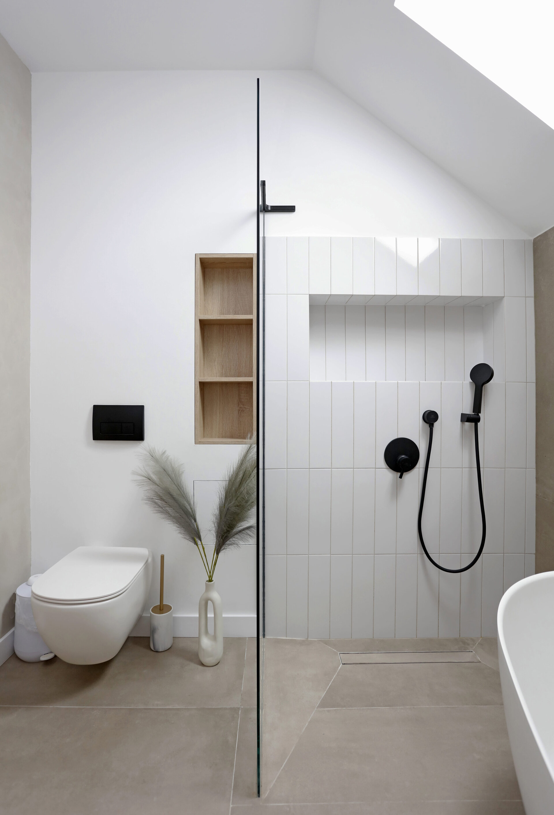 The project started from the structural phase (“shell stage”), which allowed us to reconfigure certain areas. For example, the master bathroom was expanded to include both a spacious walk-in shower and a freestanding bathtub, which serves as a central design element with its rounded shapes and minimalist aesthetic.