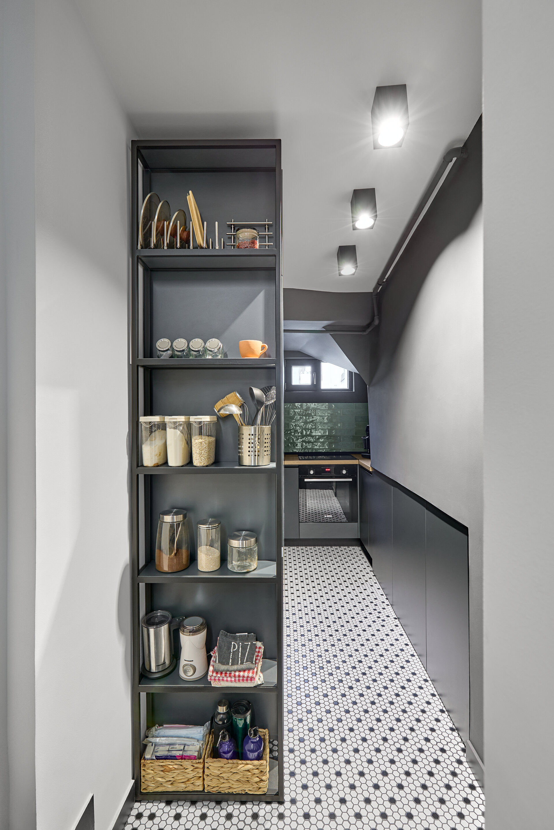 From a functional perspective, the spatial layout was preserved in its original form. The only visual separations were introduced in the day area, where a piece of furniture was strategically placed to offer the user an additional degree of privacy, without compromising the open character of the space.