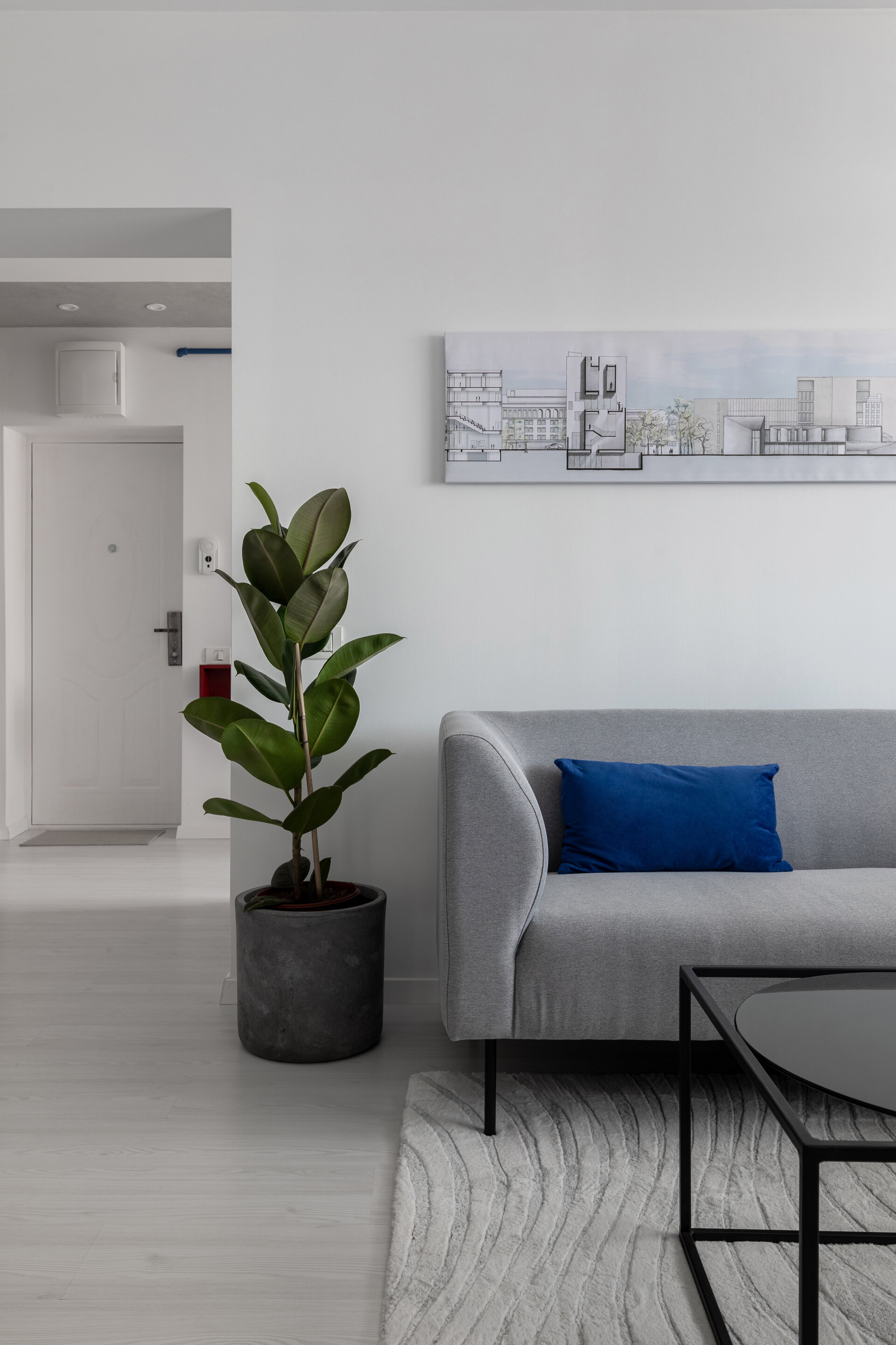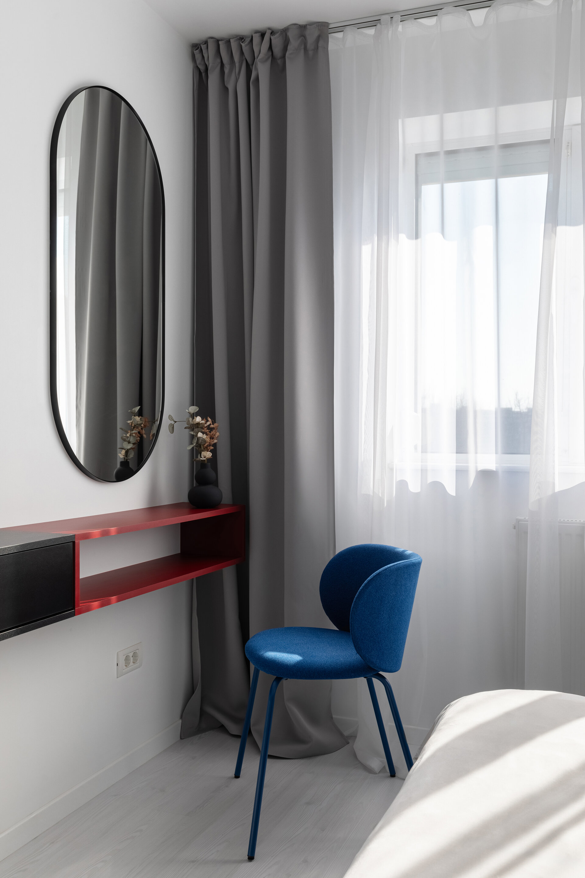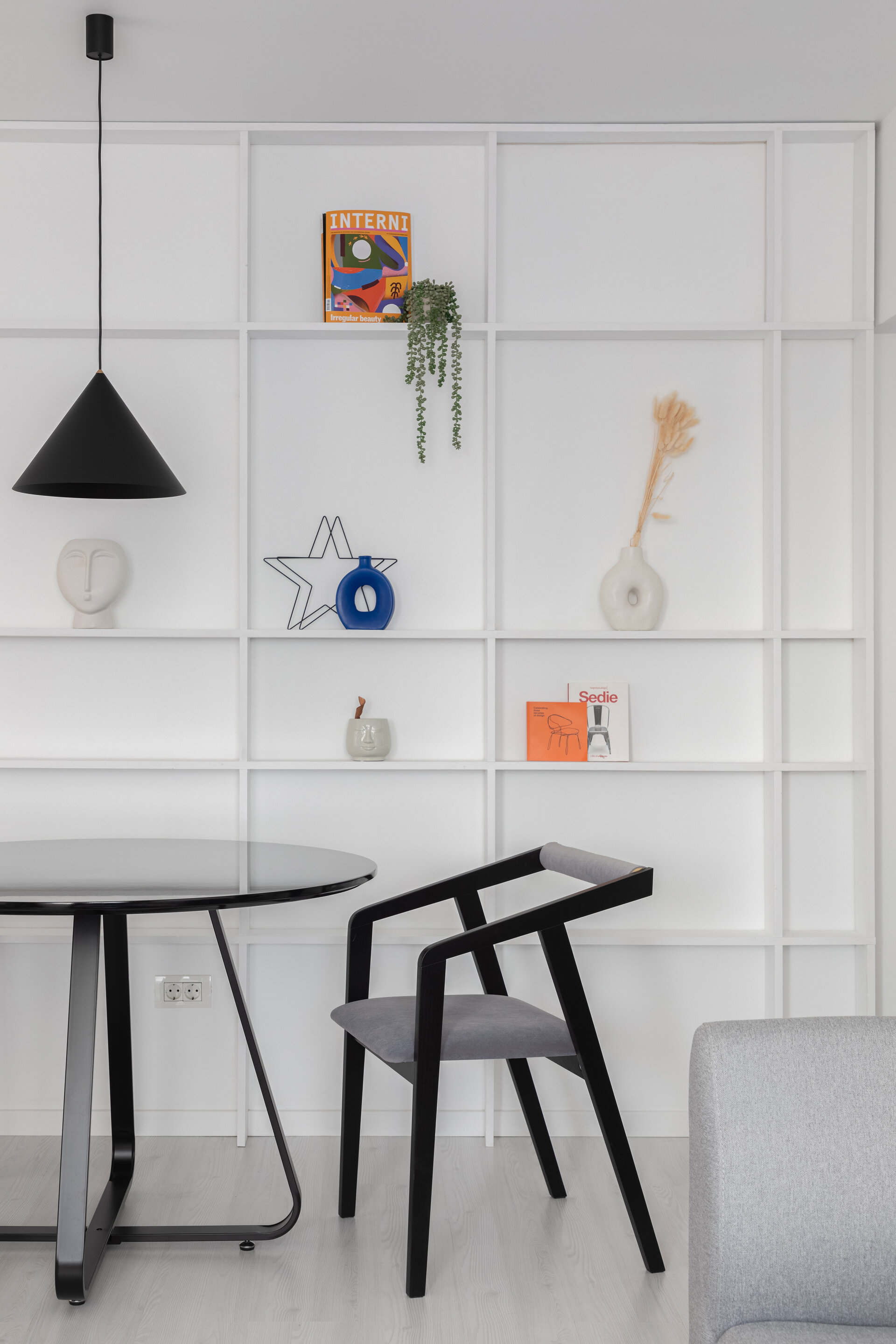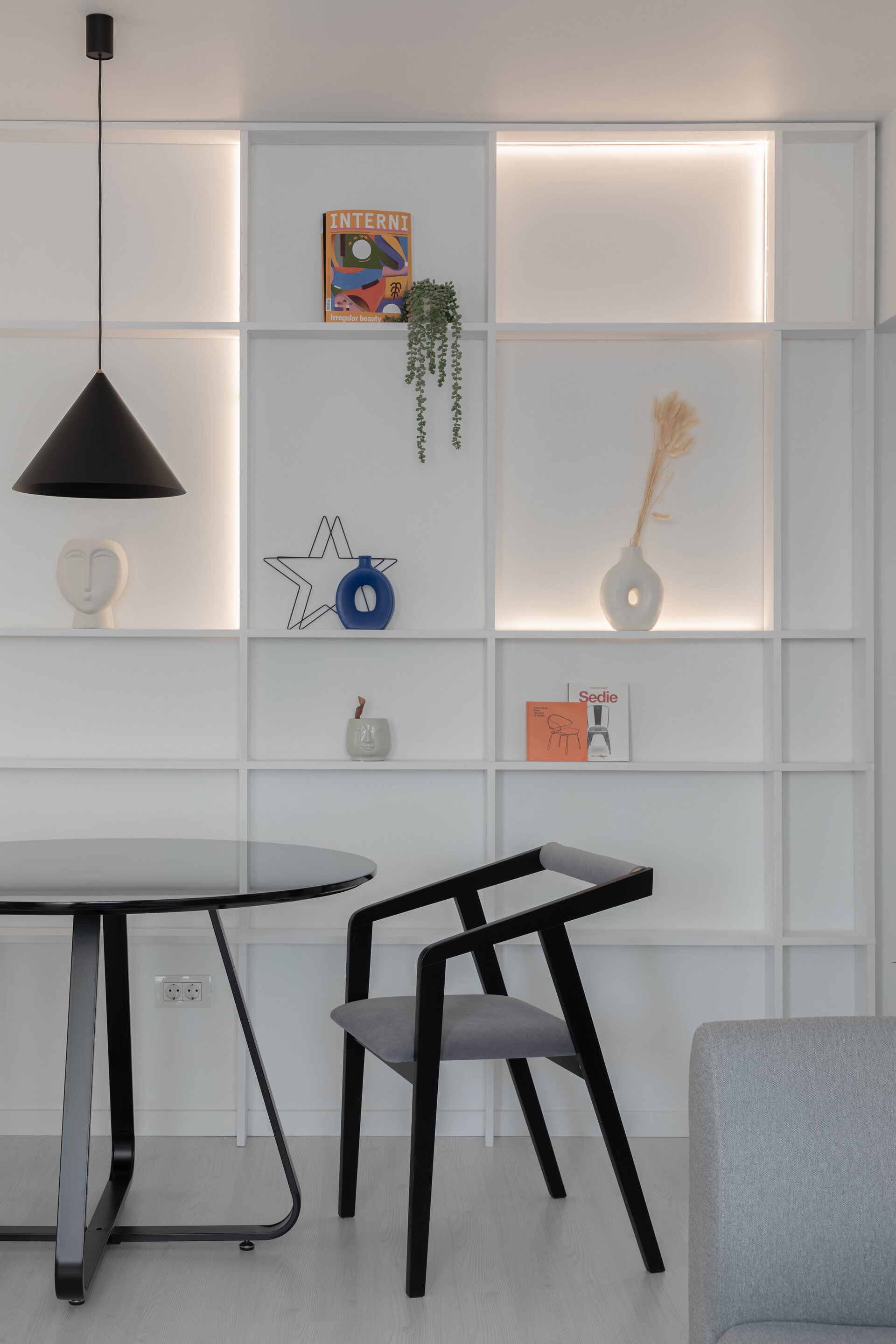 The small usable area, the passage from one room to another, the existence of 2 closets and many doors, led to the desire to visually free up the space, to emphasize functionality, ergonomics and simplicity.