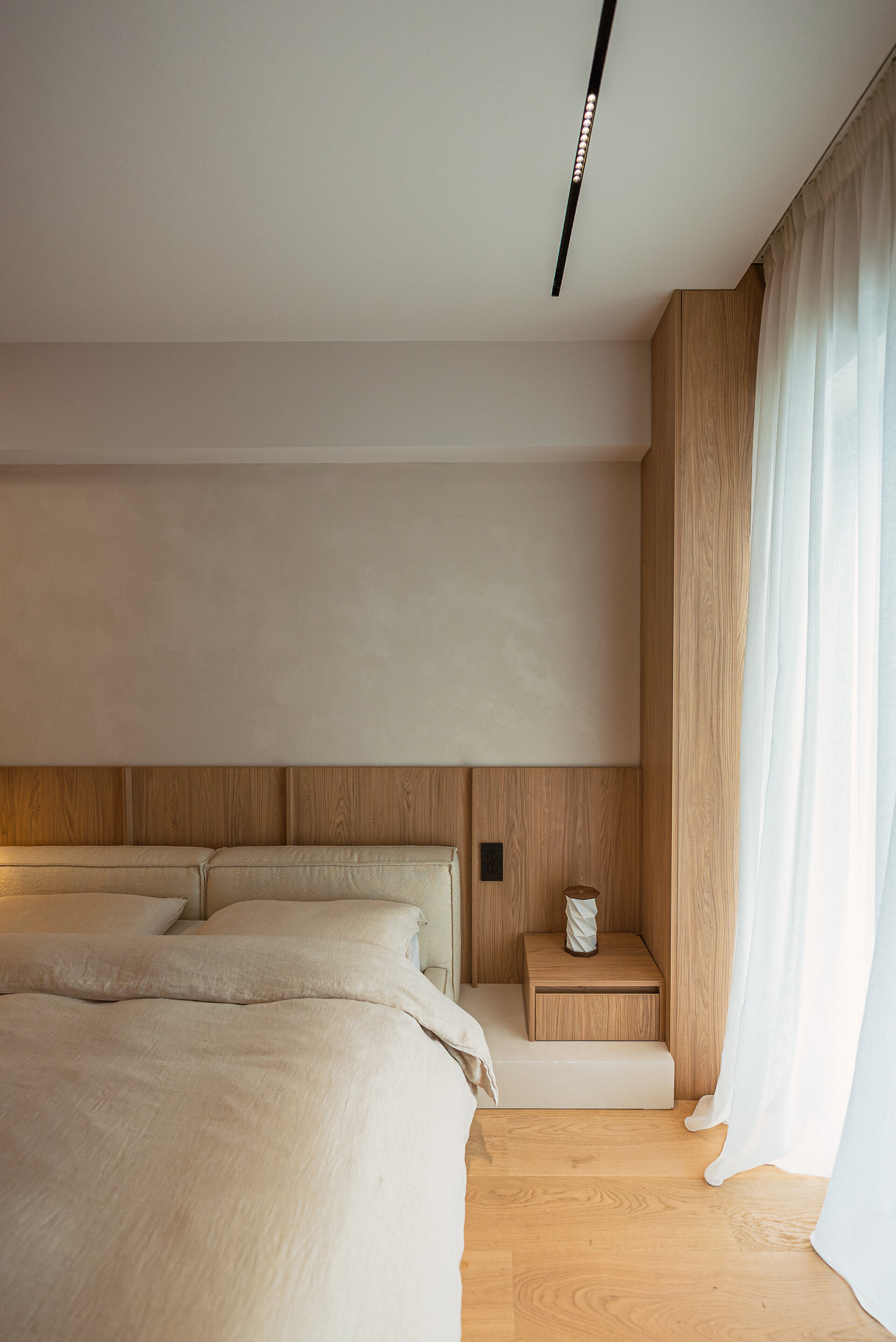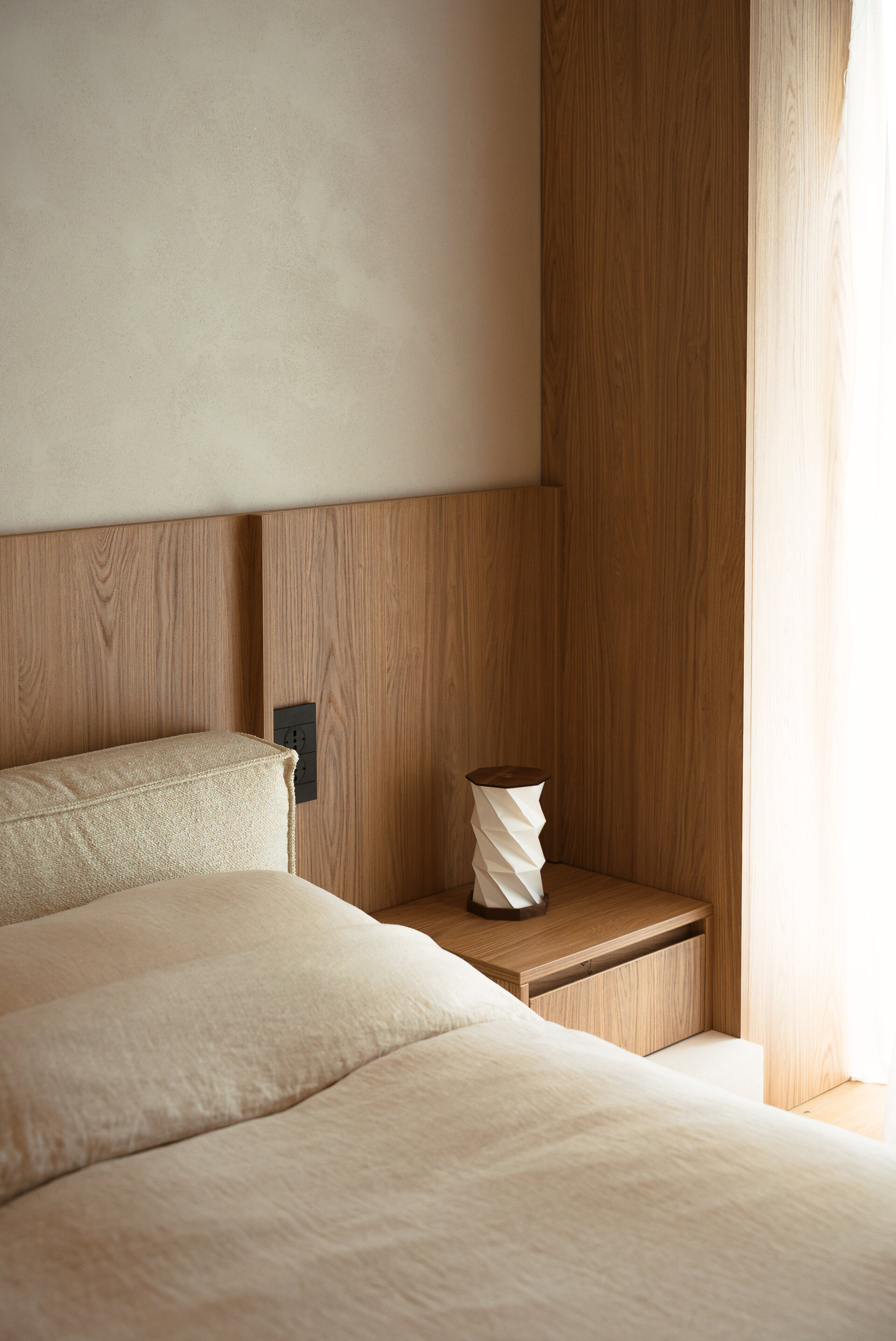 The project avoids declarative gestures and relies on a quiet aesthetic. Every space is designed to support presence and serenity. The interior architecture does not impose but rather accompanies, sustains, and protects. Functionality is carefully calibrated, with compact and integrated solutions that make no compromises in comfort.