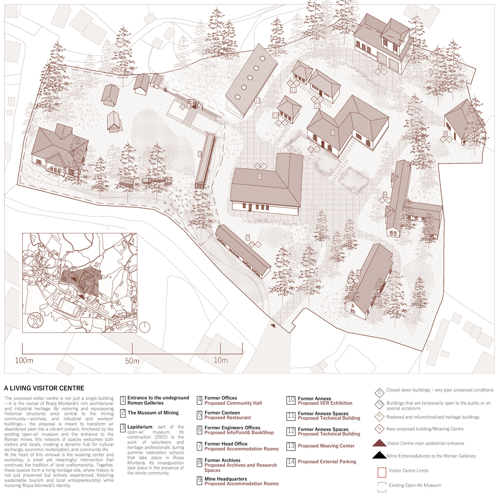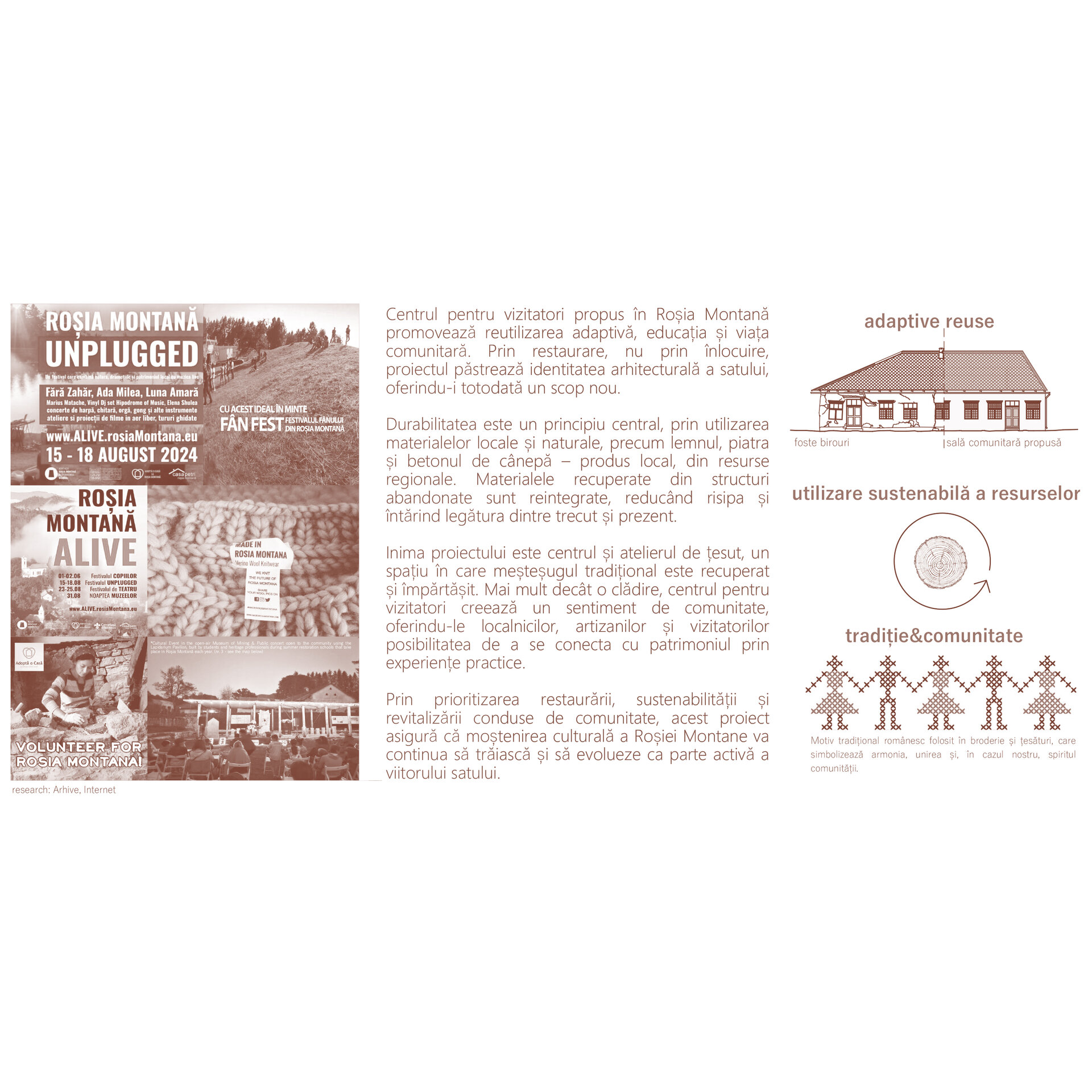 The project’s intention aims to revitalize Roșia Montană through architecture and design of a visitor centre that seamlessly integrates heritage conservation with sustainable development. By respecting the village’s historical identity while introducing thoughtful, modern interventions, we seek to create spaces that support local economic growth, enhance tourism, and improve the quality of life for residents.