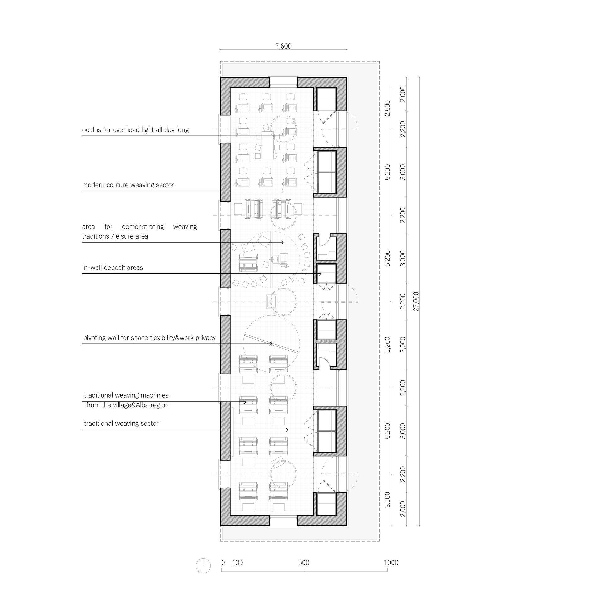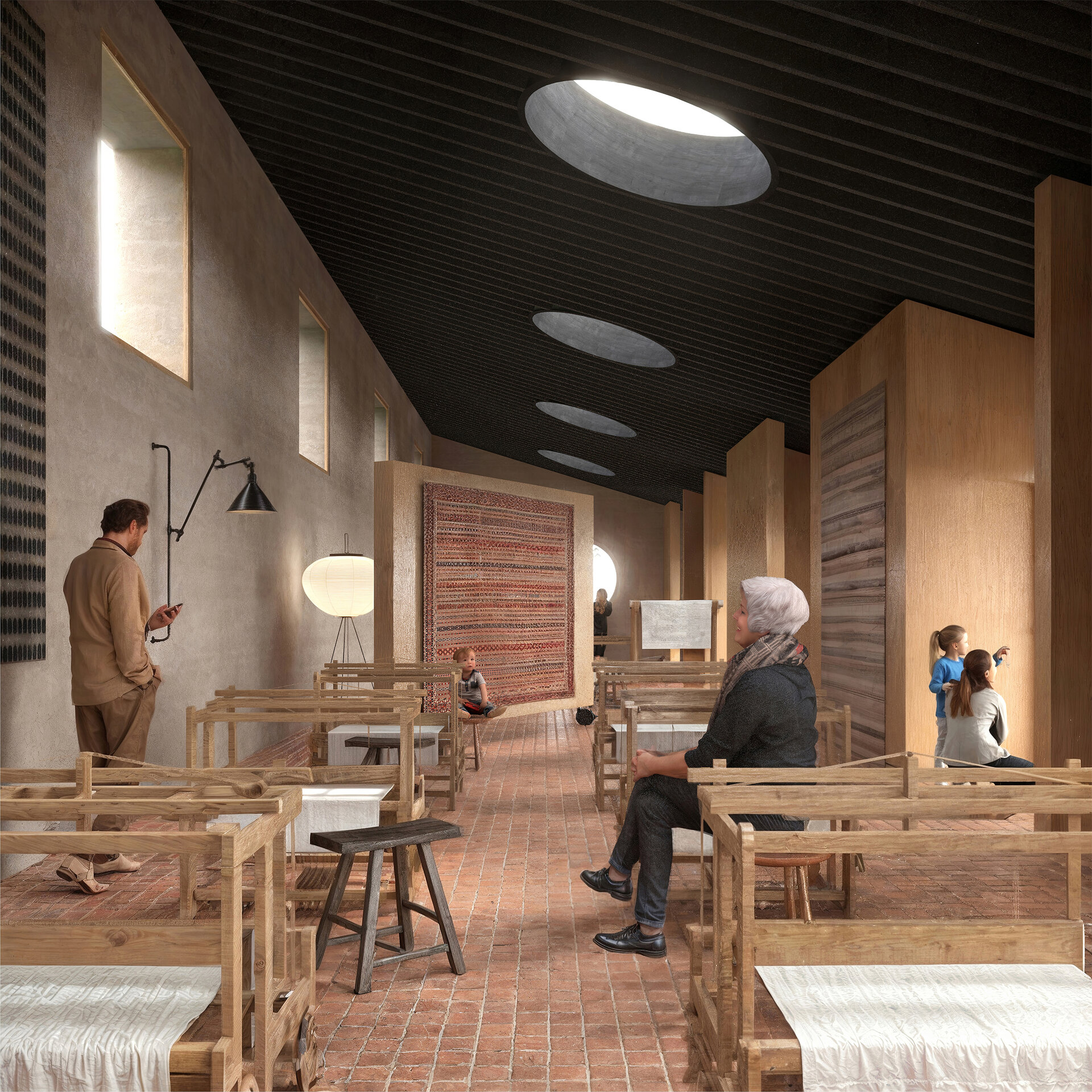 The architectural proposal focuses on the revival of weaving as a cornerstone of local small businesses, integrating this traditional craft with the village’s modern needs. Weaving, like mining in the past, is deeply embedded in the fabric of Roșia Montană’s cultural identity. Historically, weaving was not only a practical necessity for local families but also a means of expression and creativity.