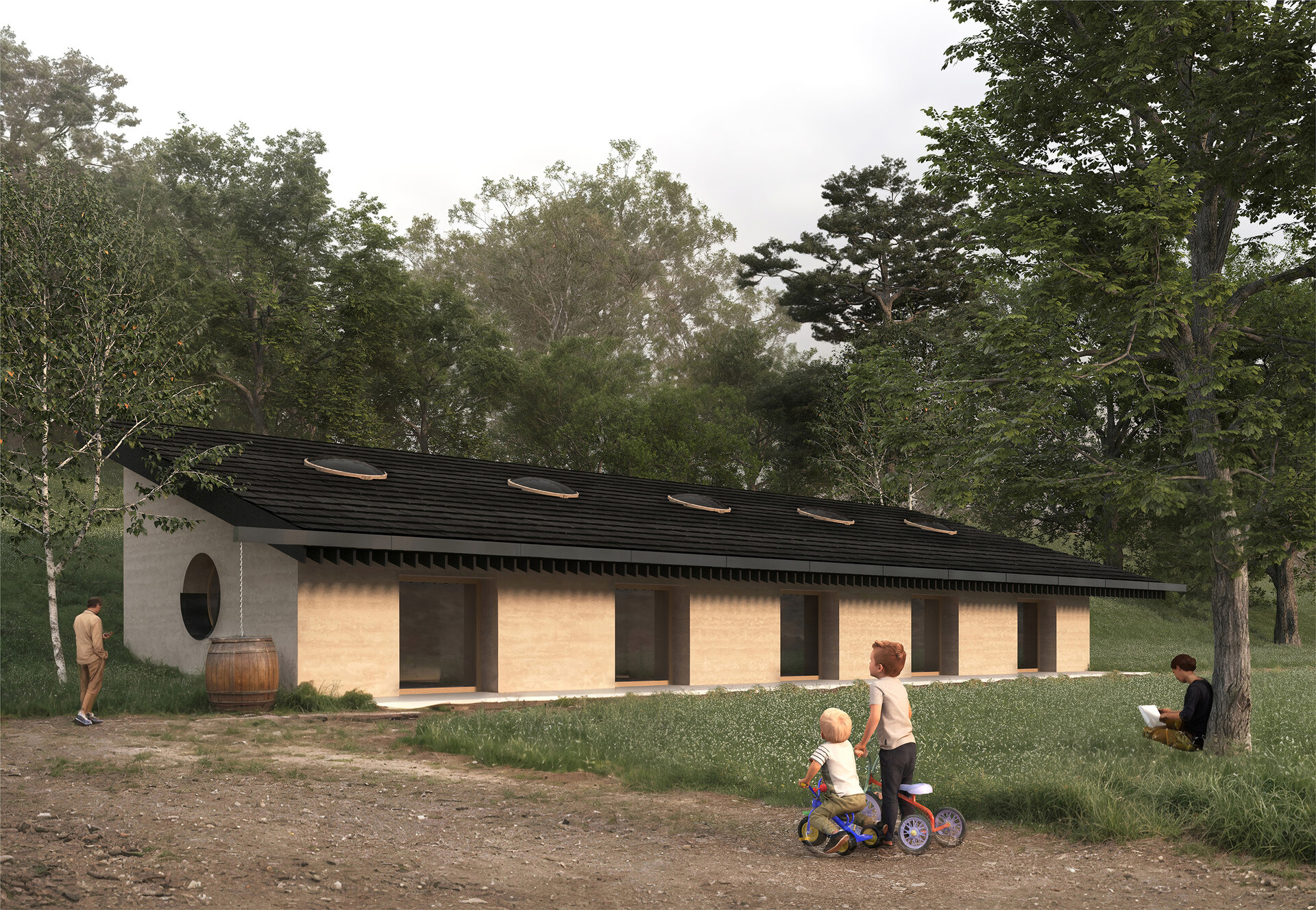 Sustainability is central, using local and natural materials such as wood, stone, and hempcrete—produced on-site from regional resources. Salvaged materials from abandoned structures are reintegrated, reducing waste and reinforcing the connection between past and present.