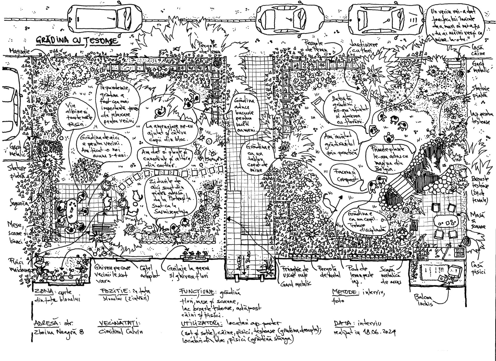 In this context, between March and July 2024, an exploratory research was carried in the Crângași district. The research aimed to answer several questions: How are informal spatial practices manifesting in the studied context? What are the necessary conditions, resources and formats through which informal spatial practices support the (environmental) commons? What spaces exist and what actors are active that can accommodate and support an intervention with a strong ecological and community character?