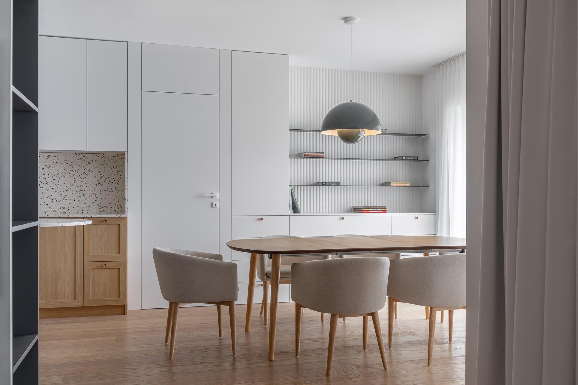 The project subtly explores the balance between functionality and aesthetic expression, offering a coherent and harmonious space where materials, light, and proportions form a common language. This is an interior that not only shelters but embraces, a place where every detail contributes to an atmosphere of calm and visual clarity.