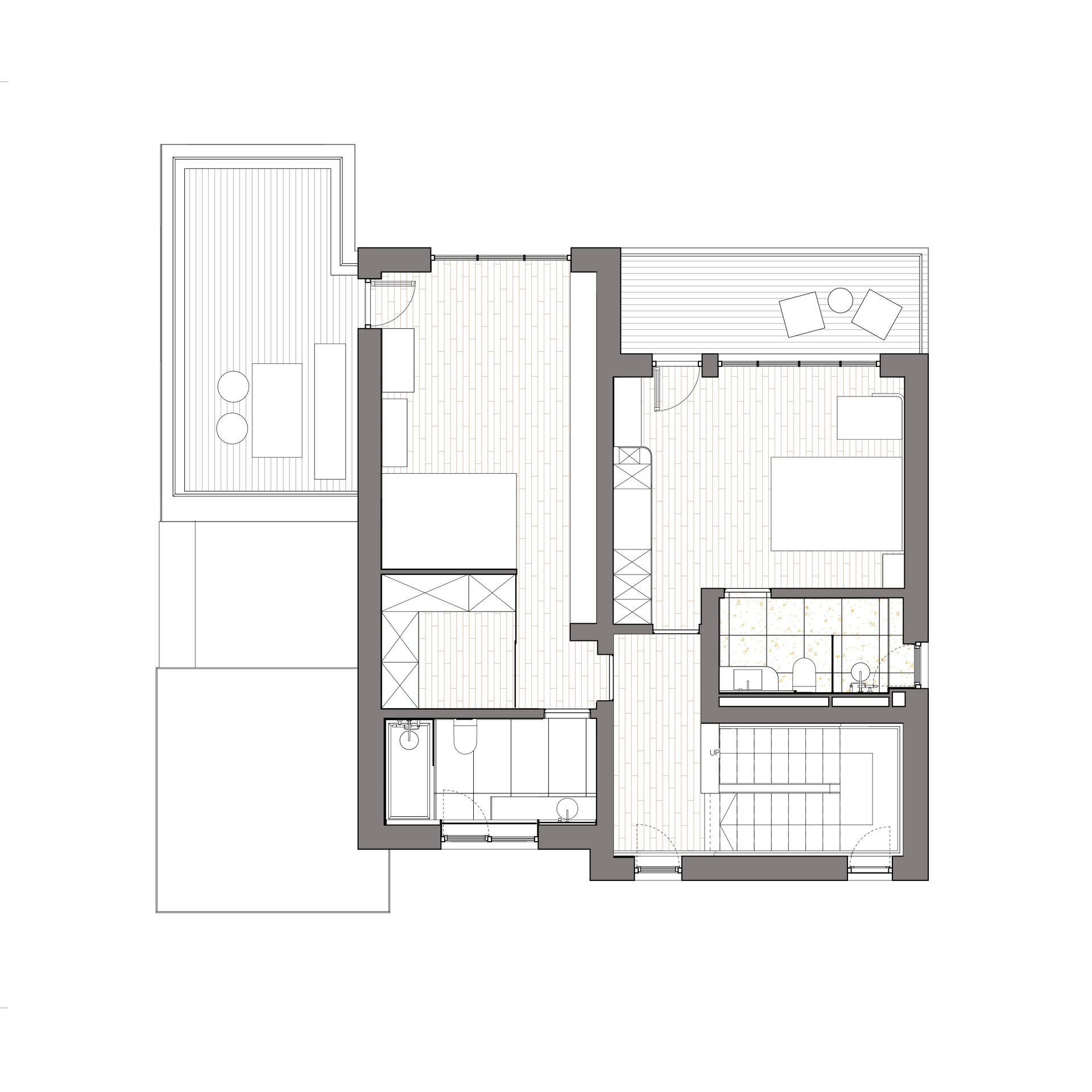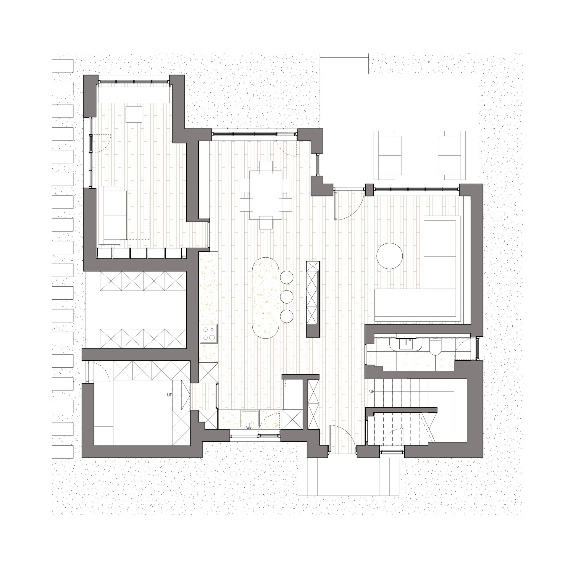 The current dwelling is functionally well resolved, but the limited size of the interior spaces required a carefully considered planimetric intervention aimed at creating more generous, well-proportioned, and user-friendly rooms. One of the key transformations involved the extension of the existing garage and its conversion into a bright and comfortable home office. At the ground floor level, the functional reorganization allowed for the creation of a spacious kitchen naturally connected to the dining area, resulting in a fluid and open layout. These adjustments led to a more balanced, coherent, and efficient home, maximizing the use of every square meter.