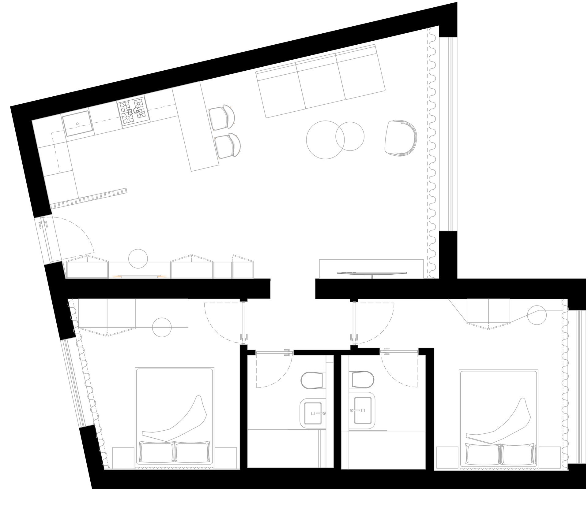 The uniqueness of the location and the layout has created a bright space that seems to celebrate a feeling of freedom and tranquility.
