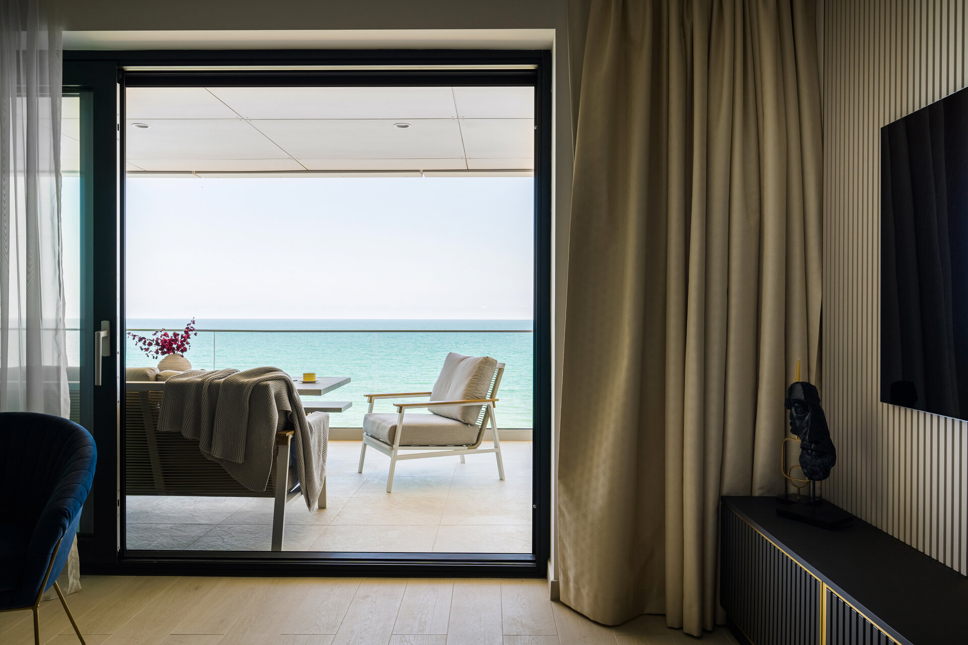 The apartment harmonizes with its unique context, offering not just a refuge, but an experience – one that allows a deep connection with the soul of the sea.