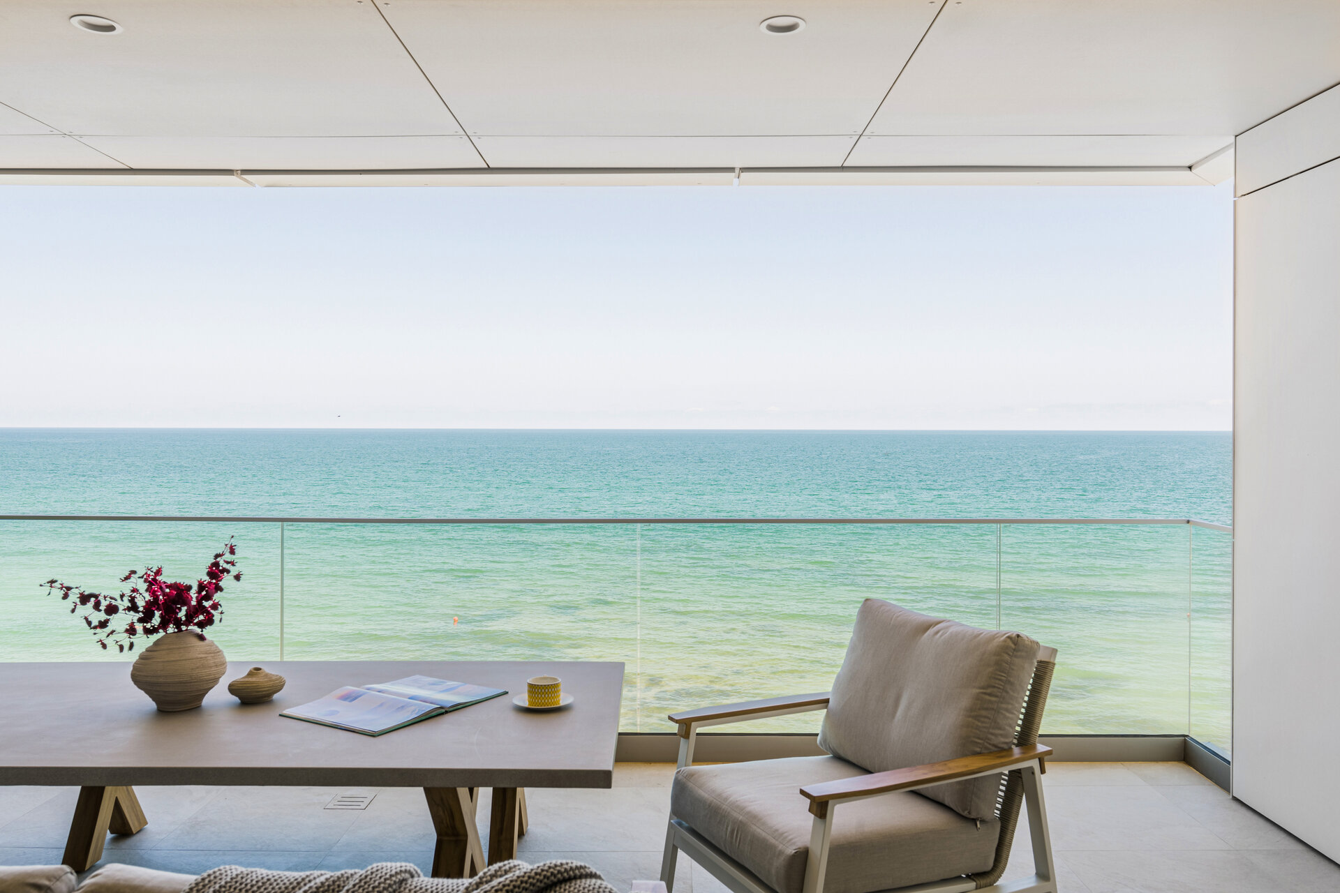 The apartment impresses with the floating effect it offers to those who step inside. The infinite sea view is highlighted by the large glazed areas, creating the sensation of a home suspended above the water.