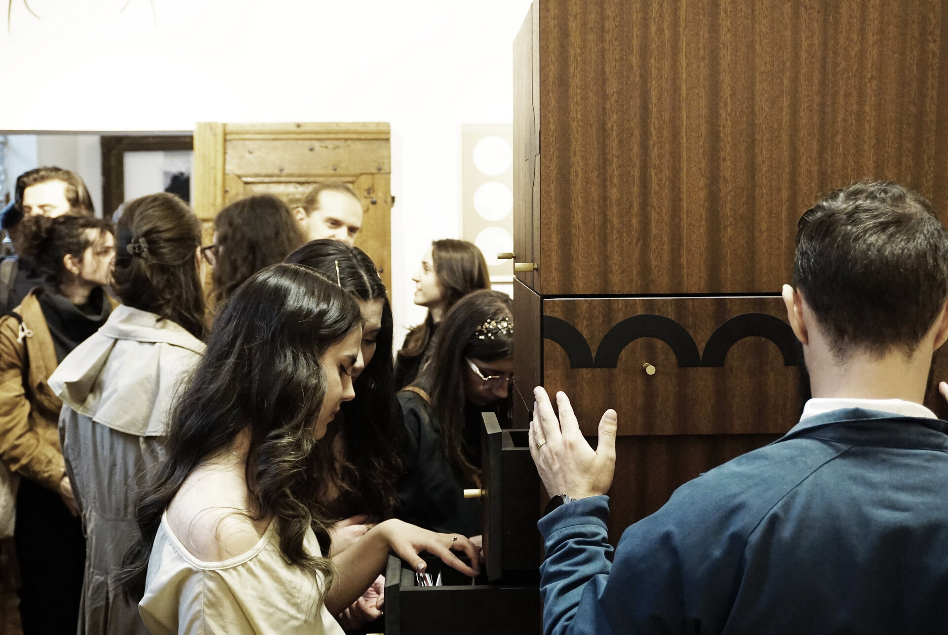 In the centre of the space, like a silent yet living presence, Memorium reveals itself slowly. It does not impose; it waits to be touched. Opened. Discovered. Surrounded. A place of memory that is not locked behind vitrines, but offers itself through gesture — drawers pulled, doors opened, panels folded down.