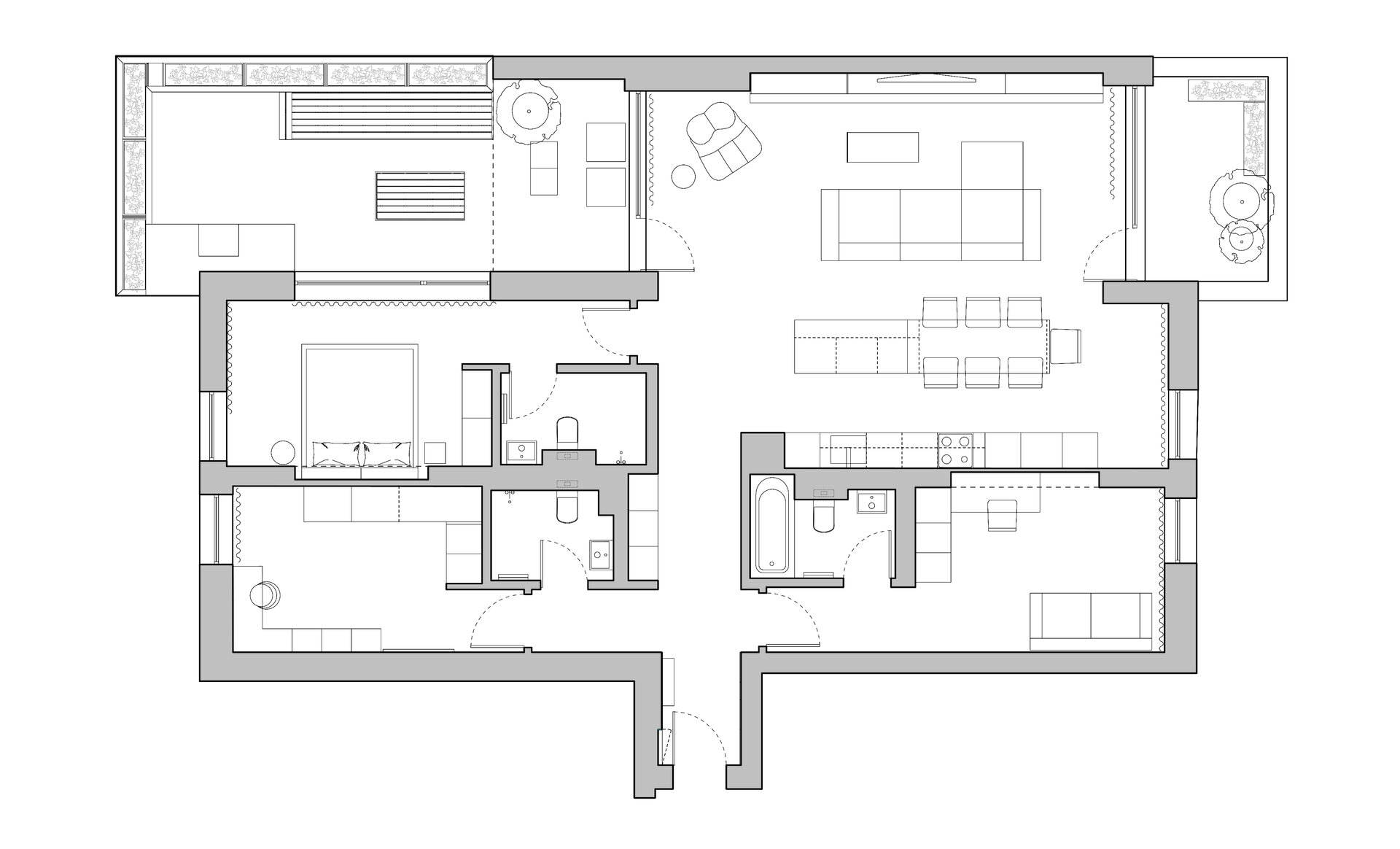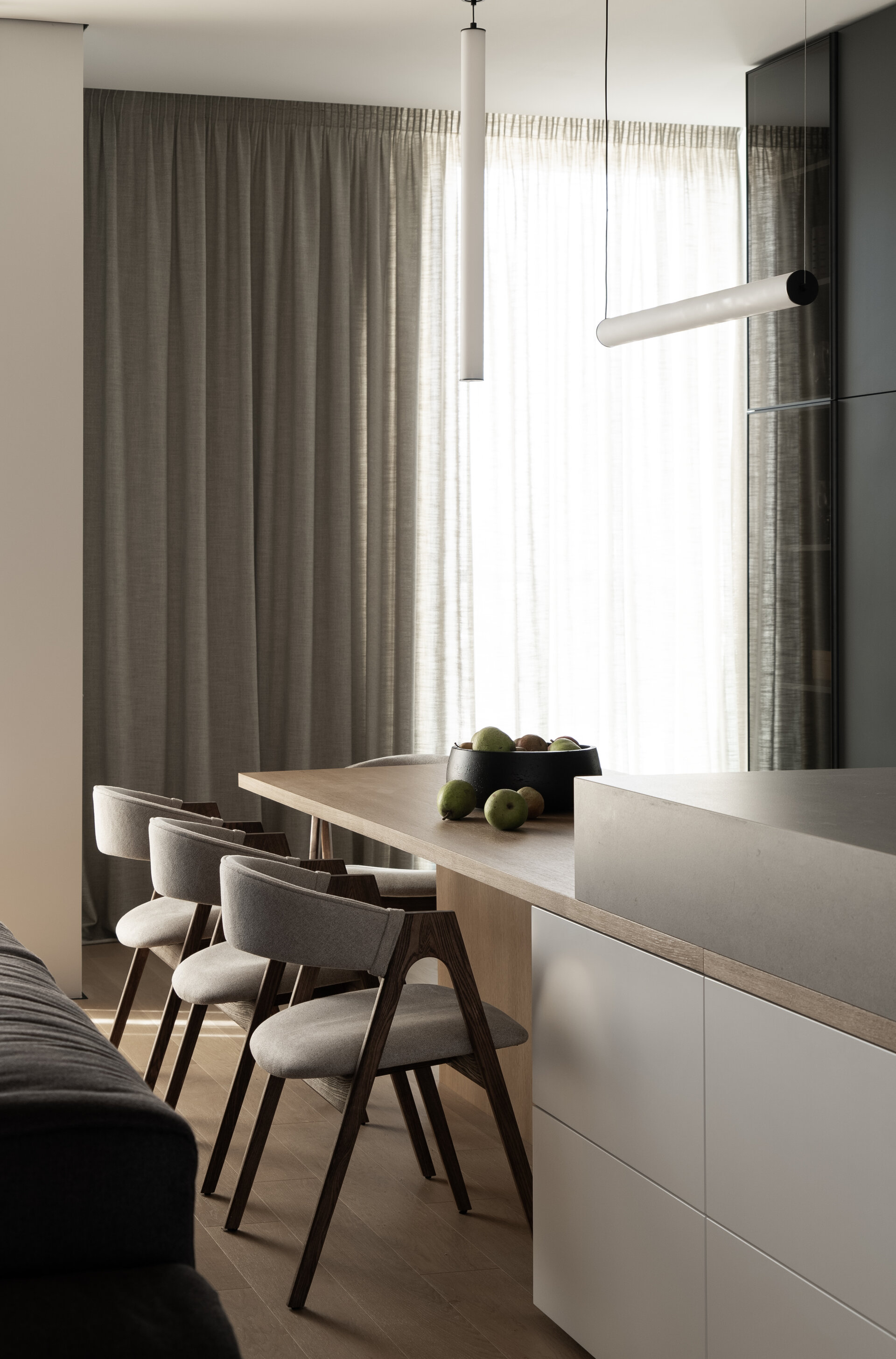 The main goal was to create a cohesive space balanced between minimalism and details with personal value. The absence of excessive decorative elements and objects that could visually clutter the space, contributes to an airy, ordered and calm atmosphere. Each piece has a clear and functional role.