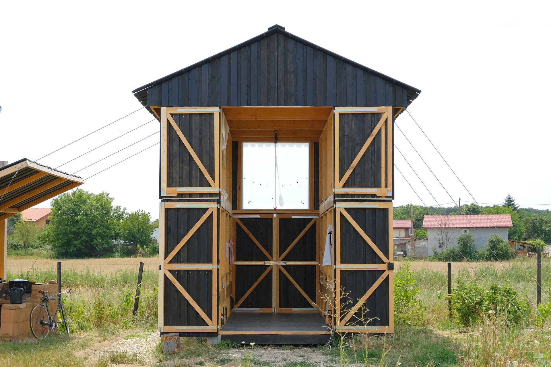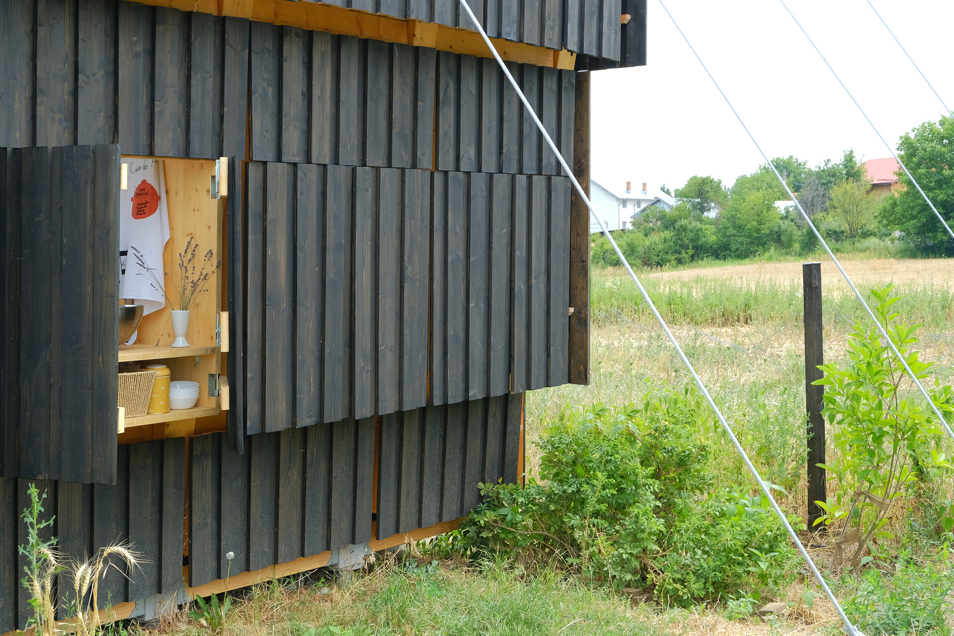 "Acaret 44°N 26°E" is a prototype for a community kitchen, built for "The Experimental Station for Research on Art and Life", a cultural space located in a rural setting 40 km from Bucharest, on a former monoculture agricultural plot in Siliștea Snagovului.