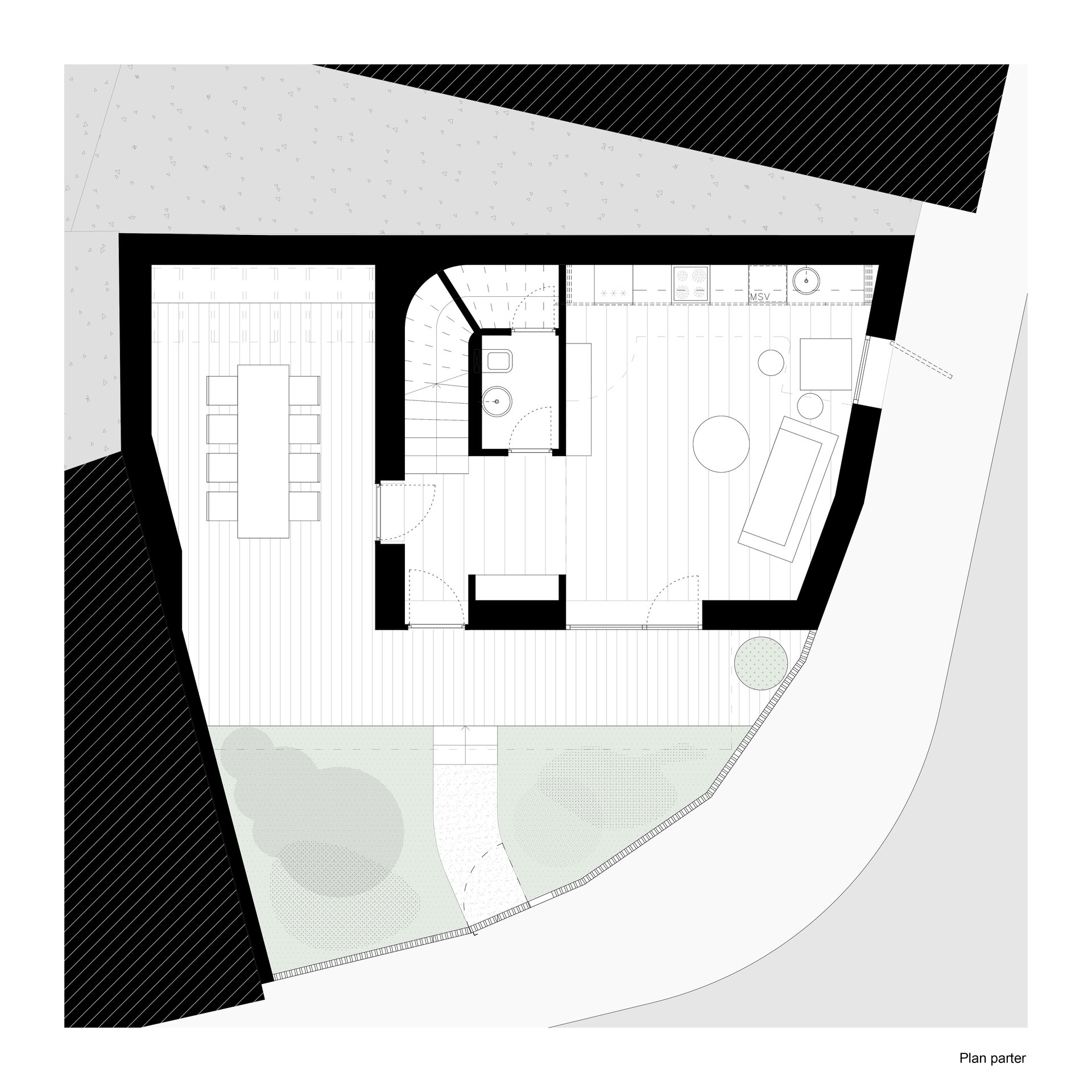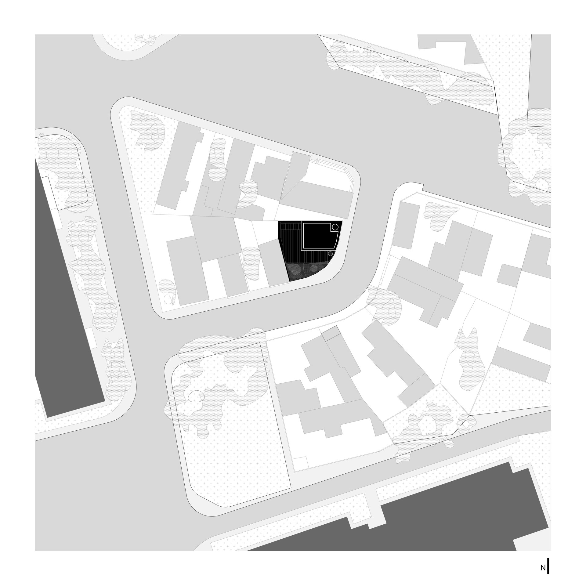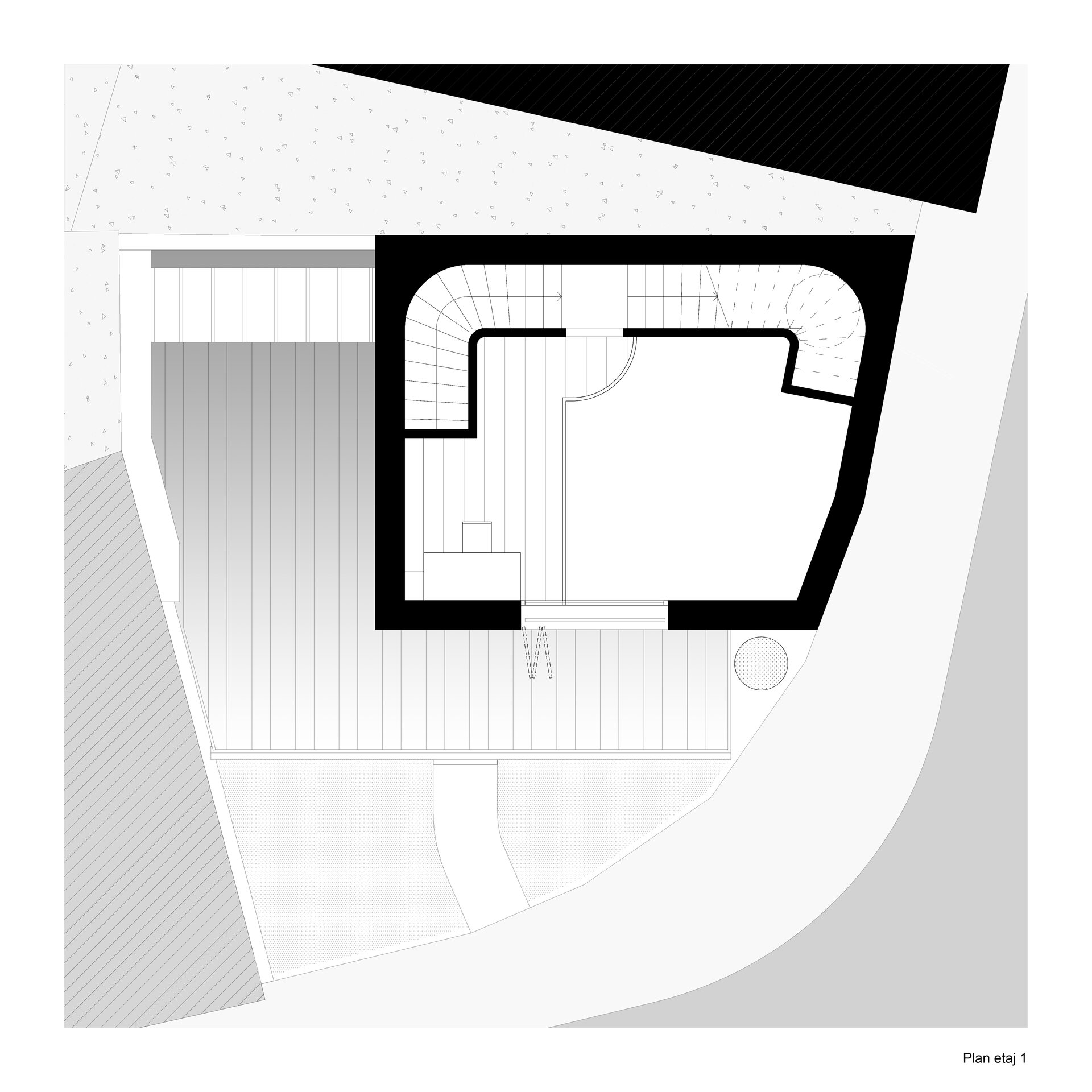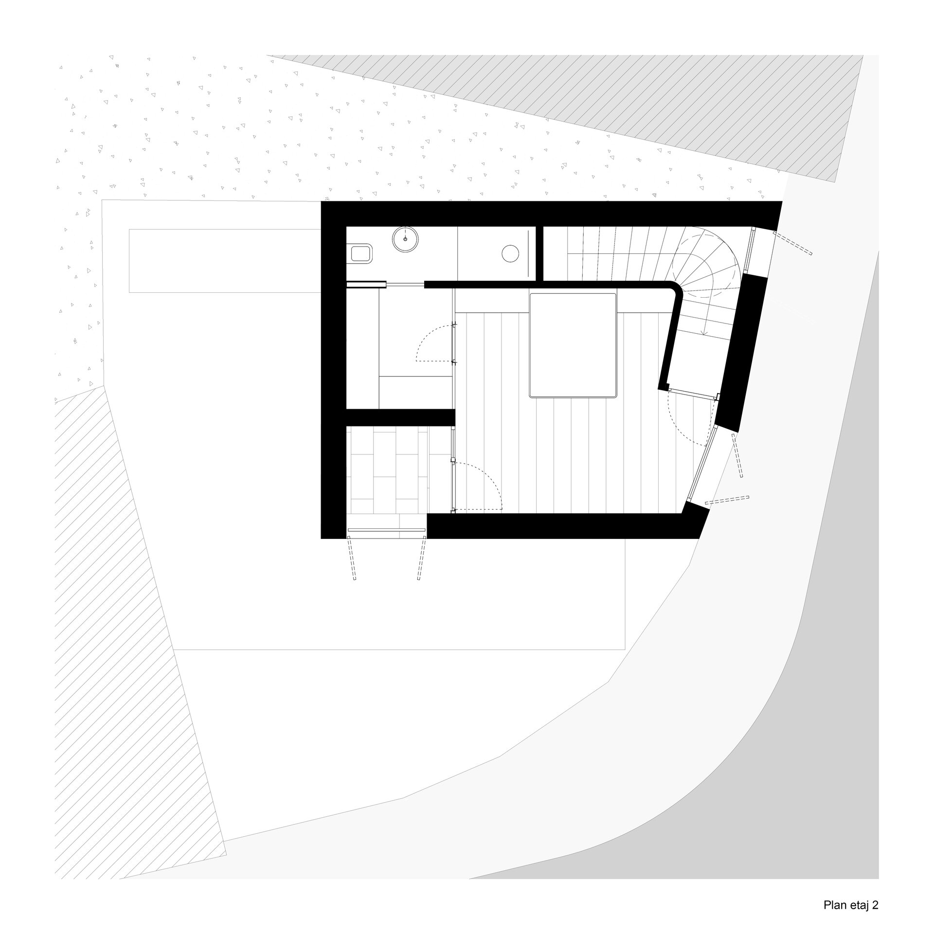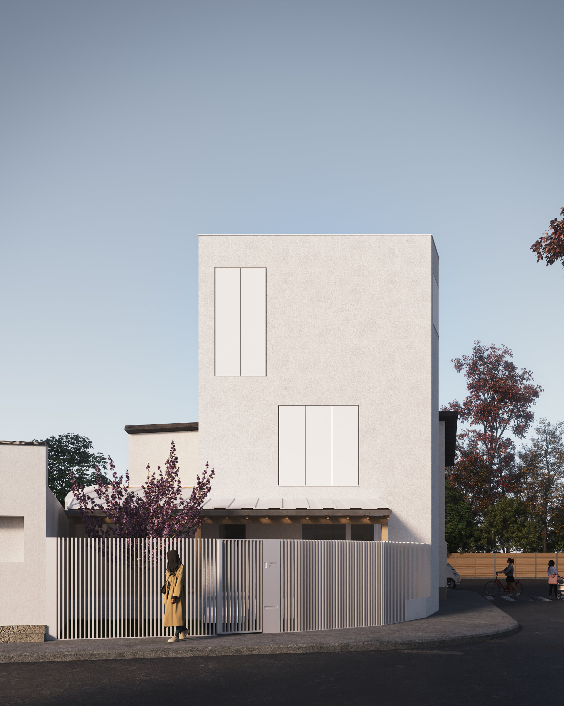 The proposed house is intended for a young family and is located in Bucharest, within a subdivision characterized by small and fragmented plots. The area is residential, bordered by apartment blocks constructed during the 1970s–1980s, predominantly having a height regime of P+10. The plot covers an area of 108 sqm and is situated at a corner, thus imposing significant constraints related to privacy and spatial organization.