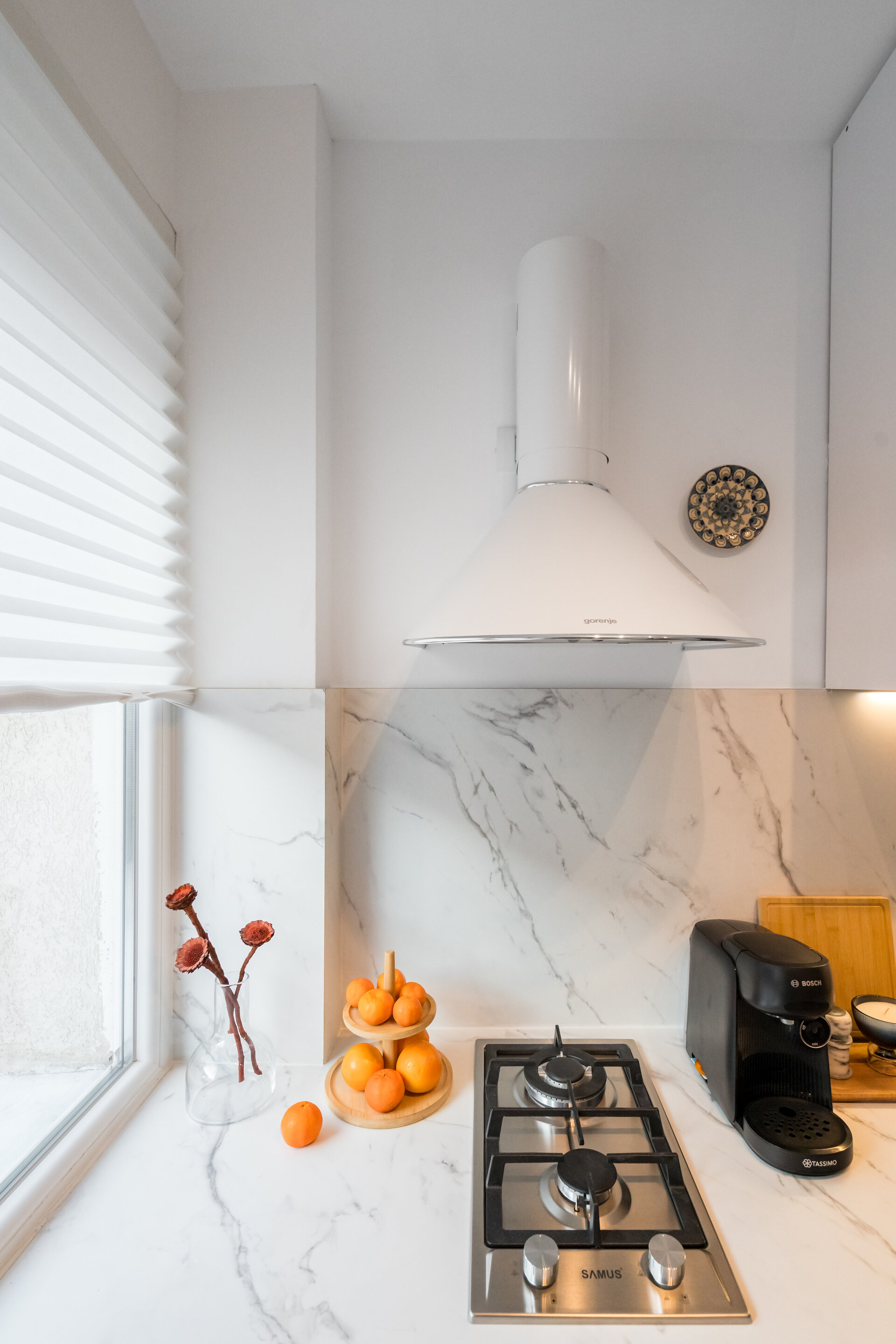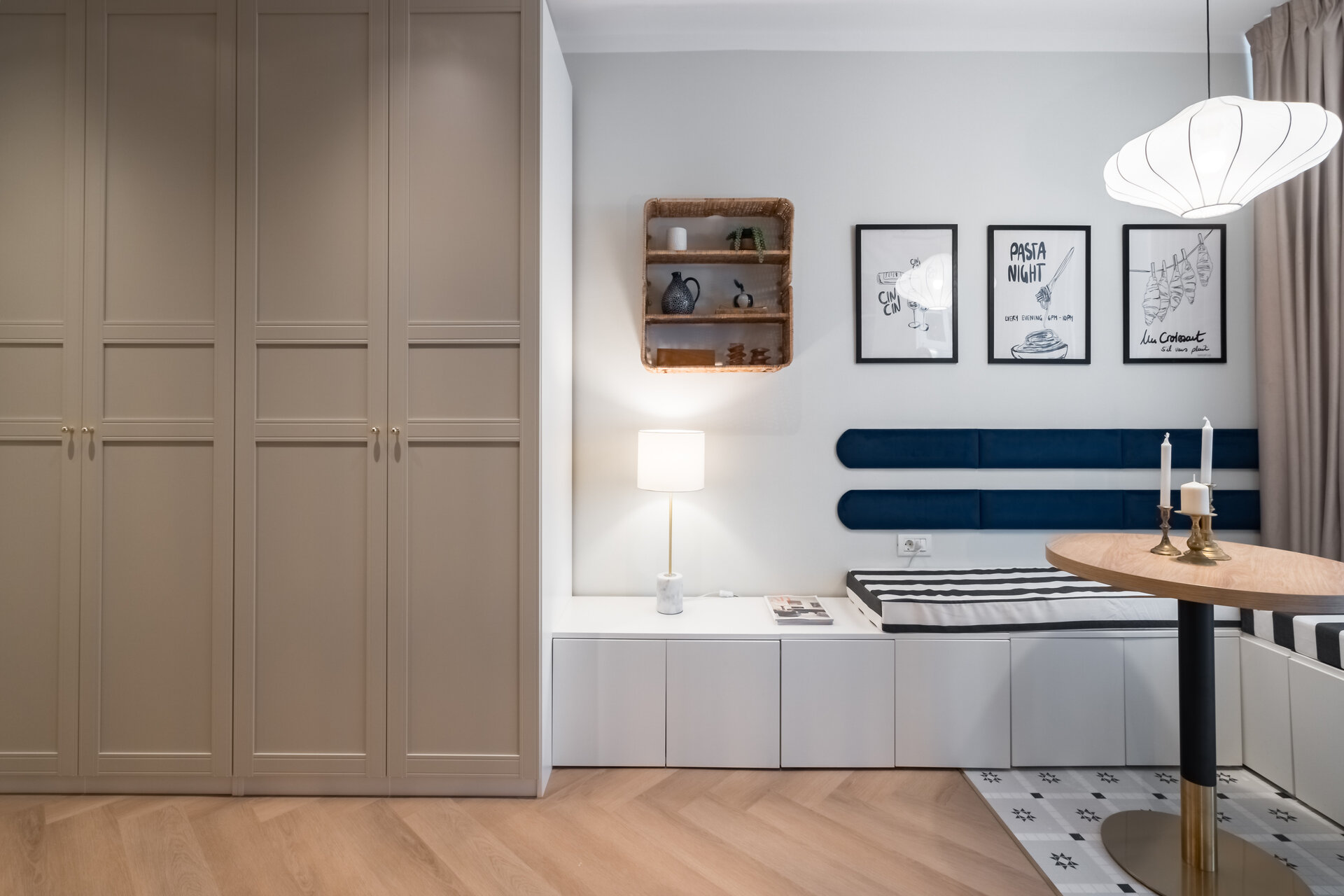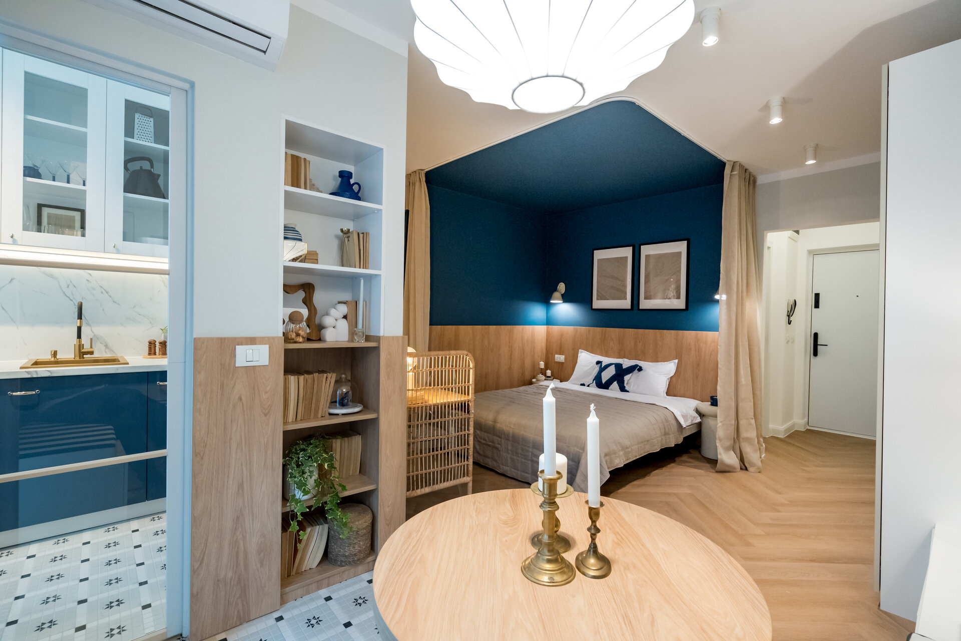 Lighting played a key role in shaping the ambiance. I used a mix of functional and decorative lighting to define different zones and highlight architectural details. All lighting fixtures were chosen with care, combining efficiency with compact, elegant design.