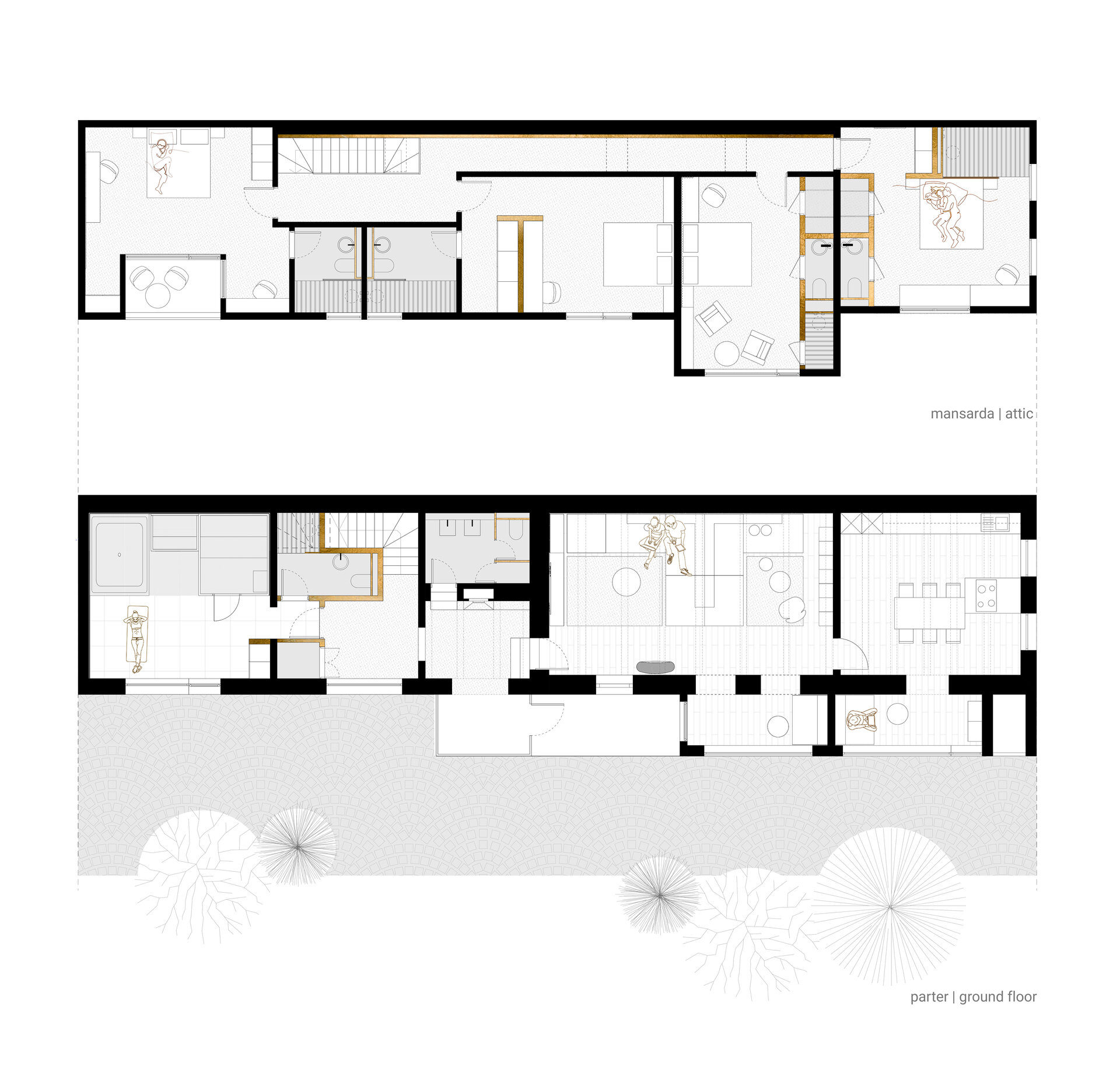 Instead of building something new, the client chose to preserve the house from 1822, not out of nostalgia, but as a gesture of reverence for the identity of the place. The intervention was delicate, designed to bring the present into dialogue with the past through minimal gestures and discreet details. The house in Bod transforms from a single-family home into a space for temporary living, keeping its roots while embracing the future. Original elements blend naturally with contemporary solutions, creating a quiet harmony where old and new time coexist peacefully.