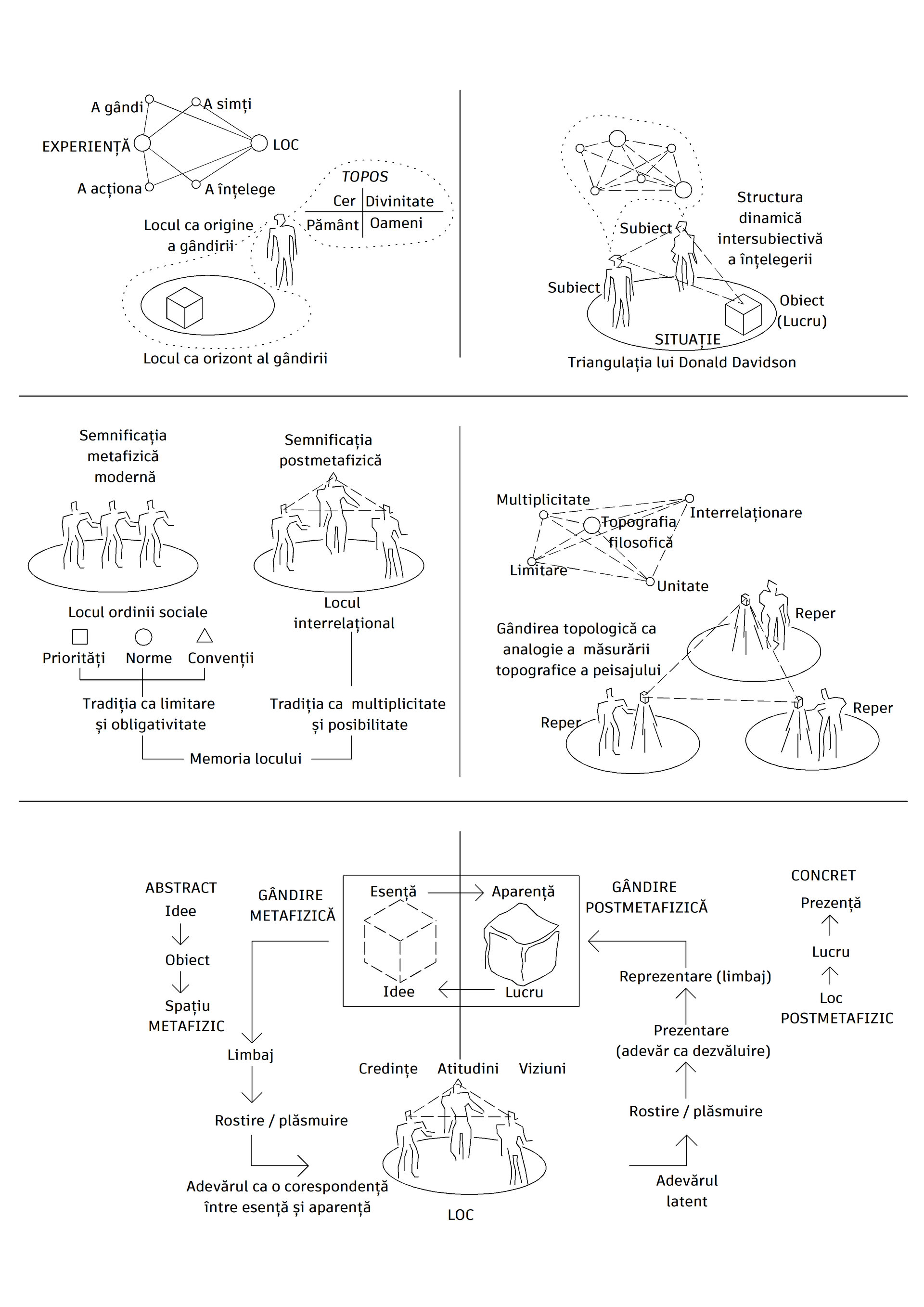 Acest volum explorează granița dintre teoria arhitecturii și filosofie, încadrându-se în domeniul recent inter- și transdisciplinar al „studiilor locului”. Parcursul tematic aprofundează trei direcții hermeneutice majore în fenomenologia locului, reprezentate de renumitul arhitect și teoretician norvegian Christian Norberg-Schulz (1926-2000), filosoful australian Jeff Malpas (n. 1958) și arhitectul sud-african Hendrik Auret (n. 1983). Nu ar fi fost posibil un astfel de demers fără recursul la textele originare ale fenomenologiei și la interpretările clasice ale acestora: Martin Heidegger, Hans-Georg Gadamer, Michel Haar, Richard Coyne și Adrian Snodgrass.