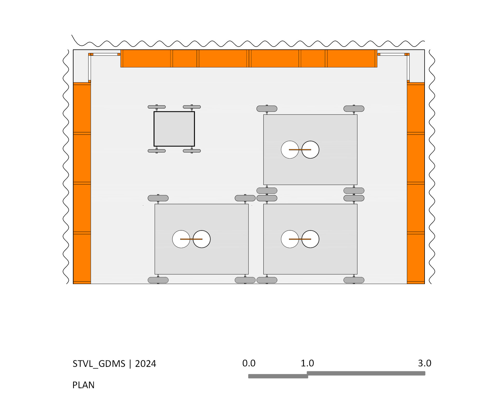 În versiunea 3.0 a proiectului STVL, modulele de raft sunt dispuse pe 3 laturi ale spațiului alocat. Pe cele doua laturi scurte ocupate de rafturi, accesul către zona centrală a standului este permisă prin intermediul a doua culoare de circulație de 1.15 m. Nucleul standului este compus dint 3 mese albe de expunere, fără roțile STVL 1.0 si 2.0