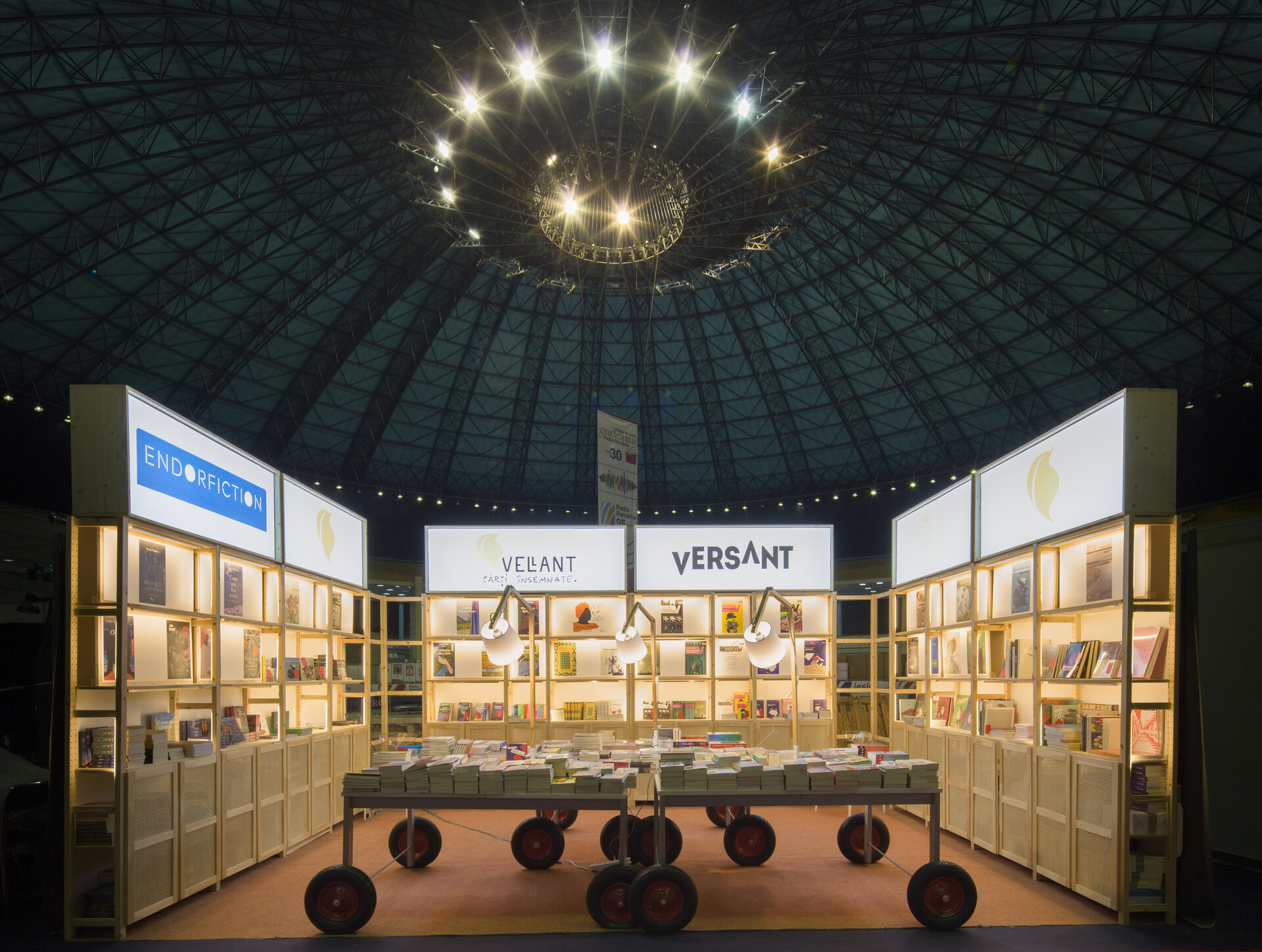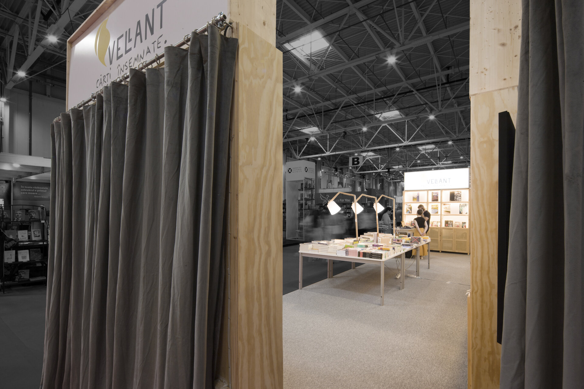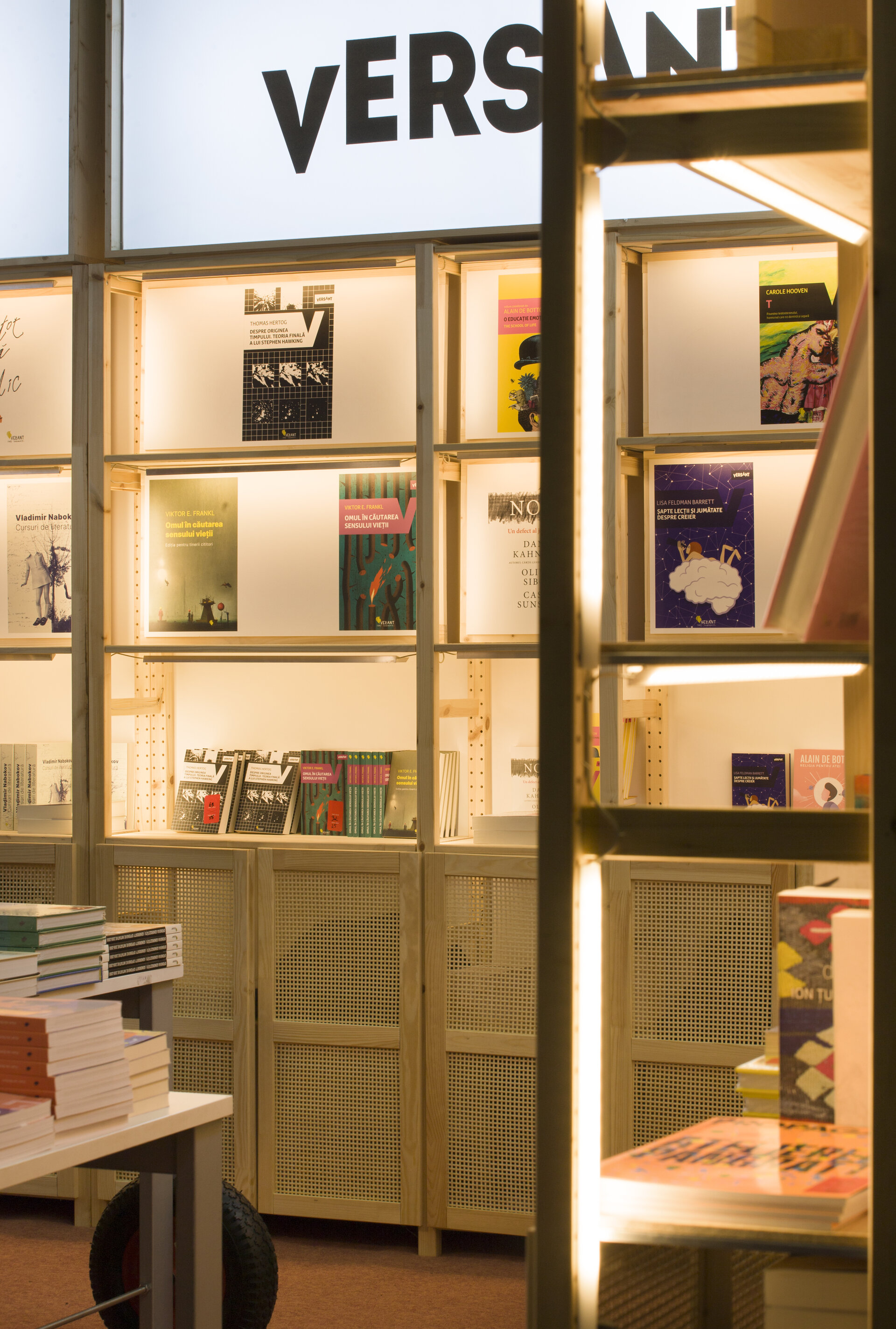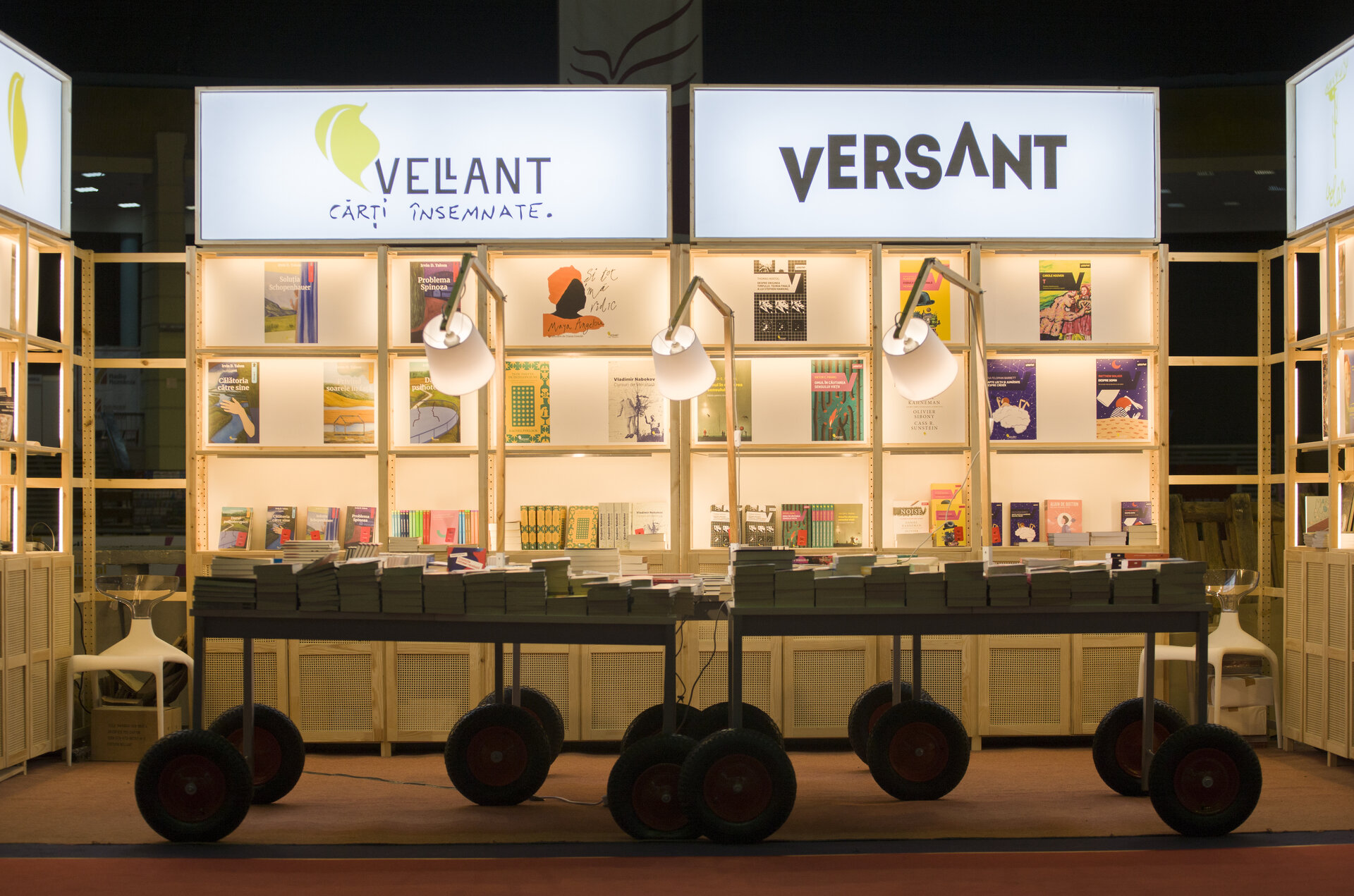 Proiectul prezintă două versiuni de reconfigurare ale proiectului modular de stand al editurii Vellant construit inițial în 2023, pentru târgul de carte „Bookfest”.