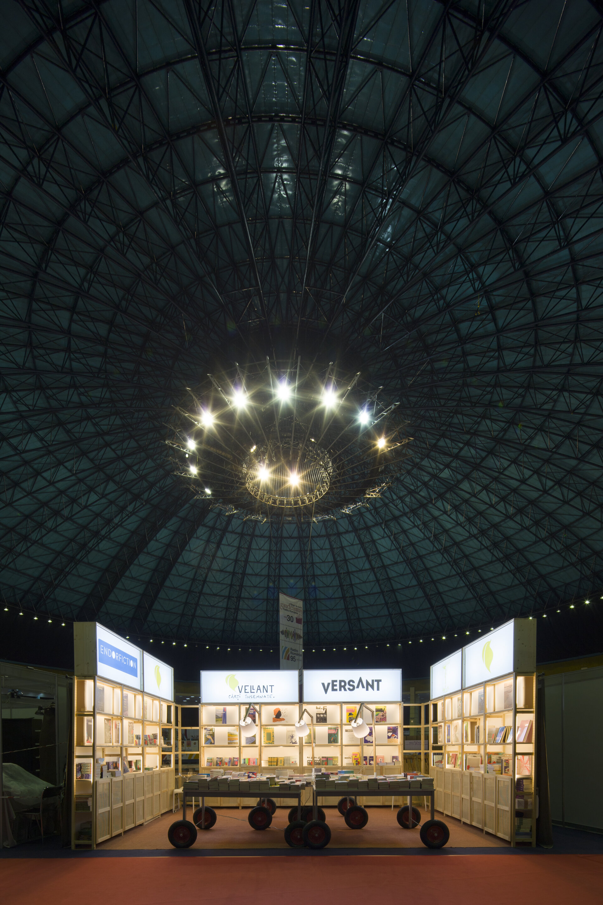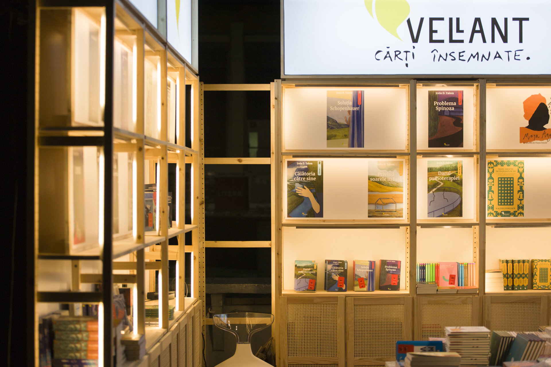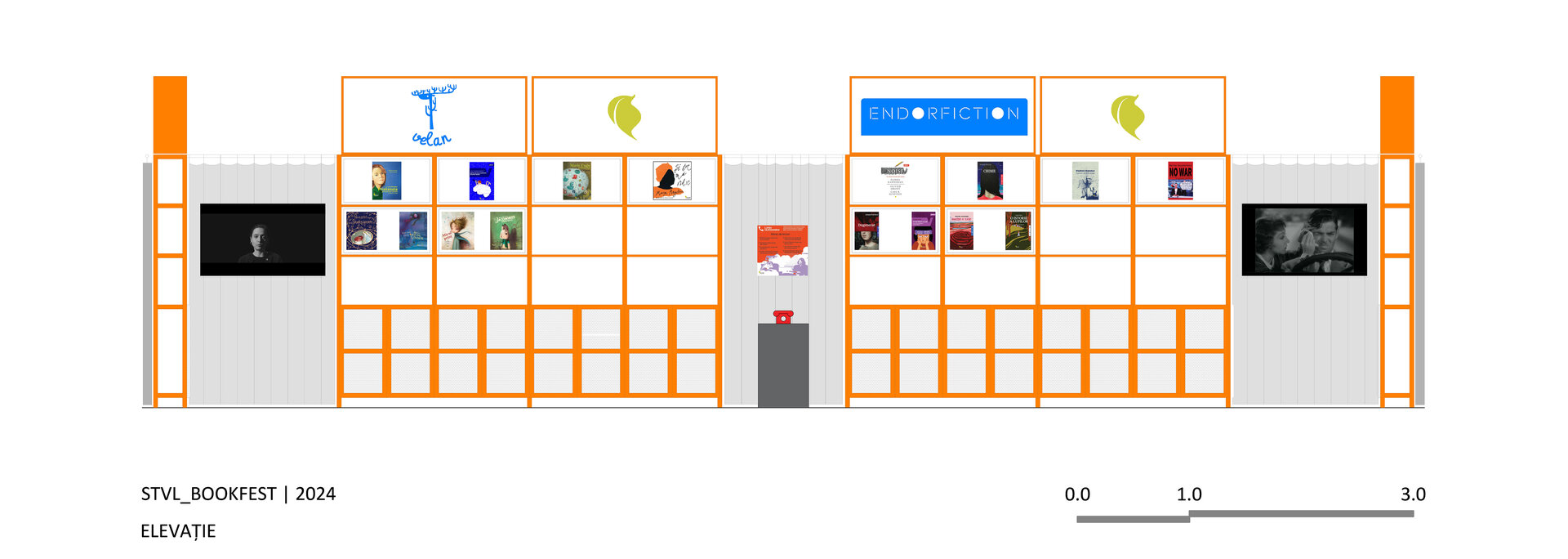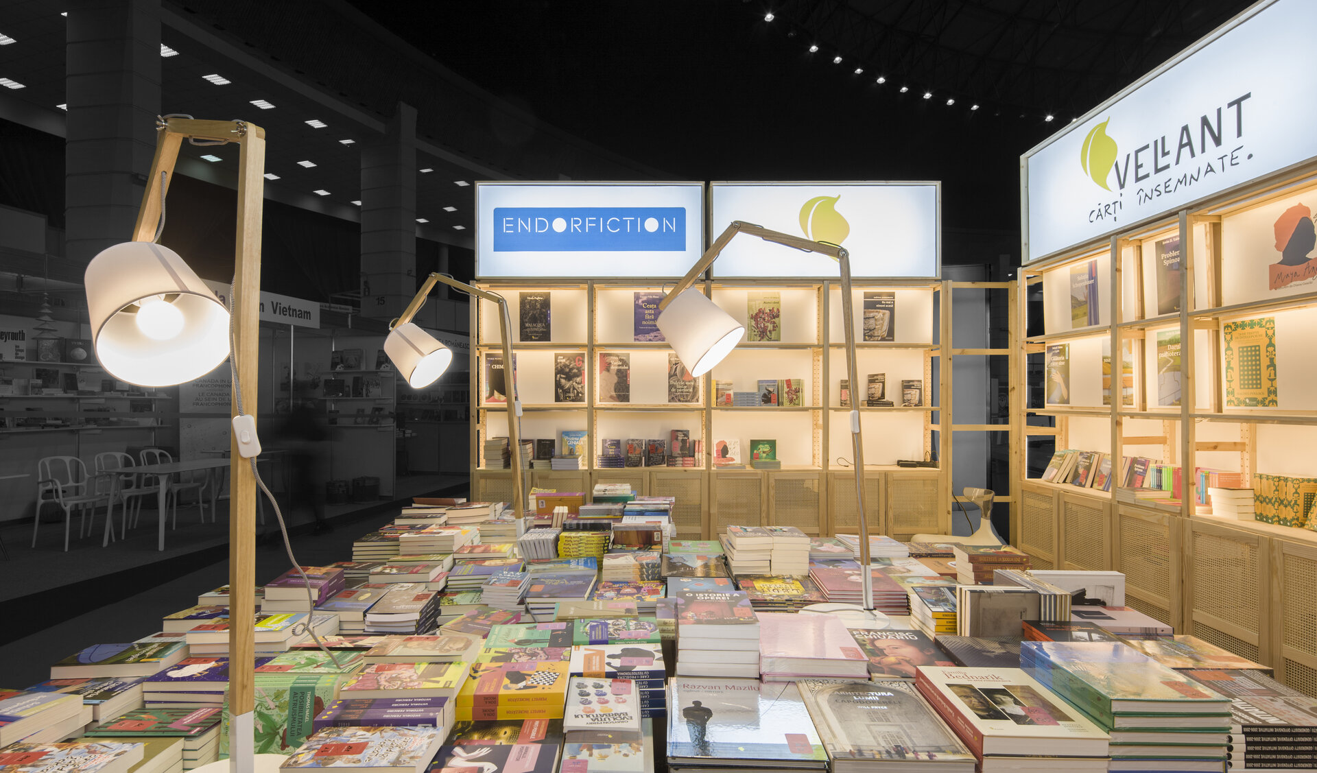 Proiectul prezintă două versiuni de reconfigurare ale proiectului modular de stand al editurii Vellant construit inițial în 2023, pentru târgul de carte „Bookfest”.