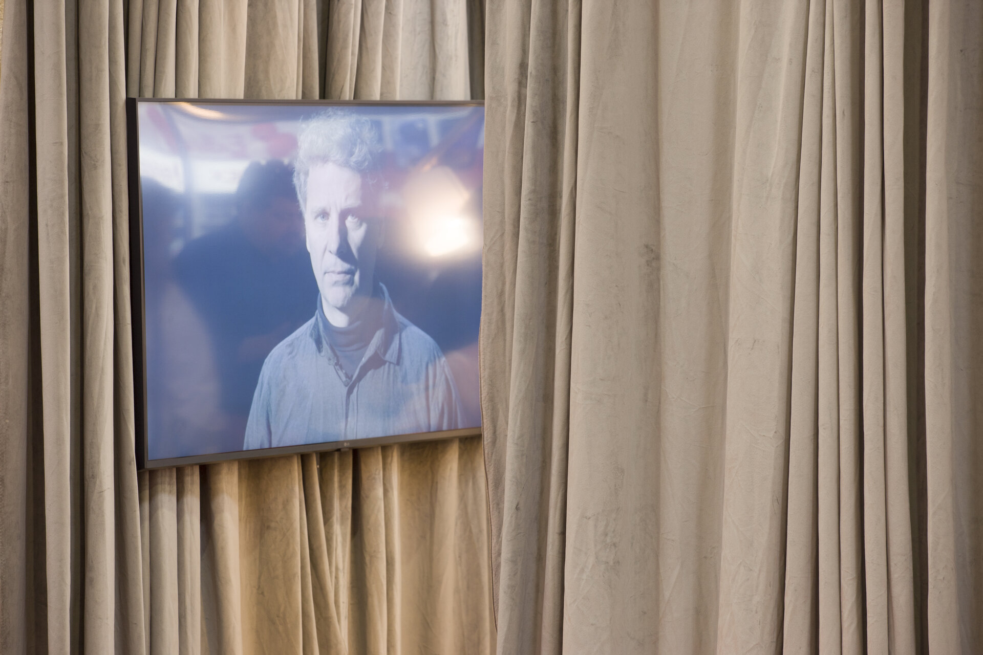 Pe suprafețele elementelor de stand pe care nu sunt expuse titluri de cărți, sunt montate draperii din catifea, recuzită recontextualizată a galeriei /SAC @Bucharest .