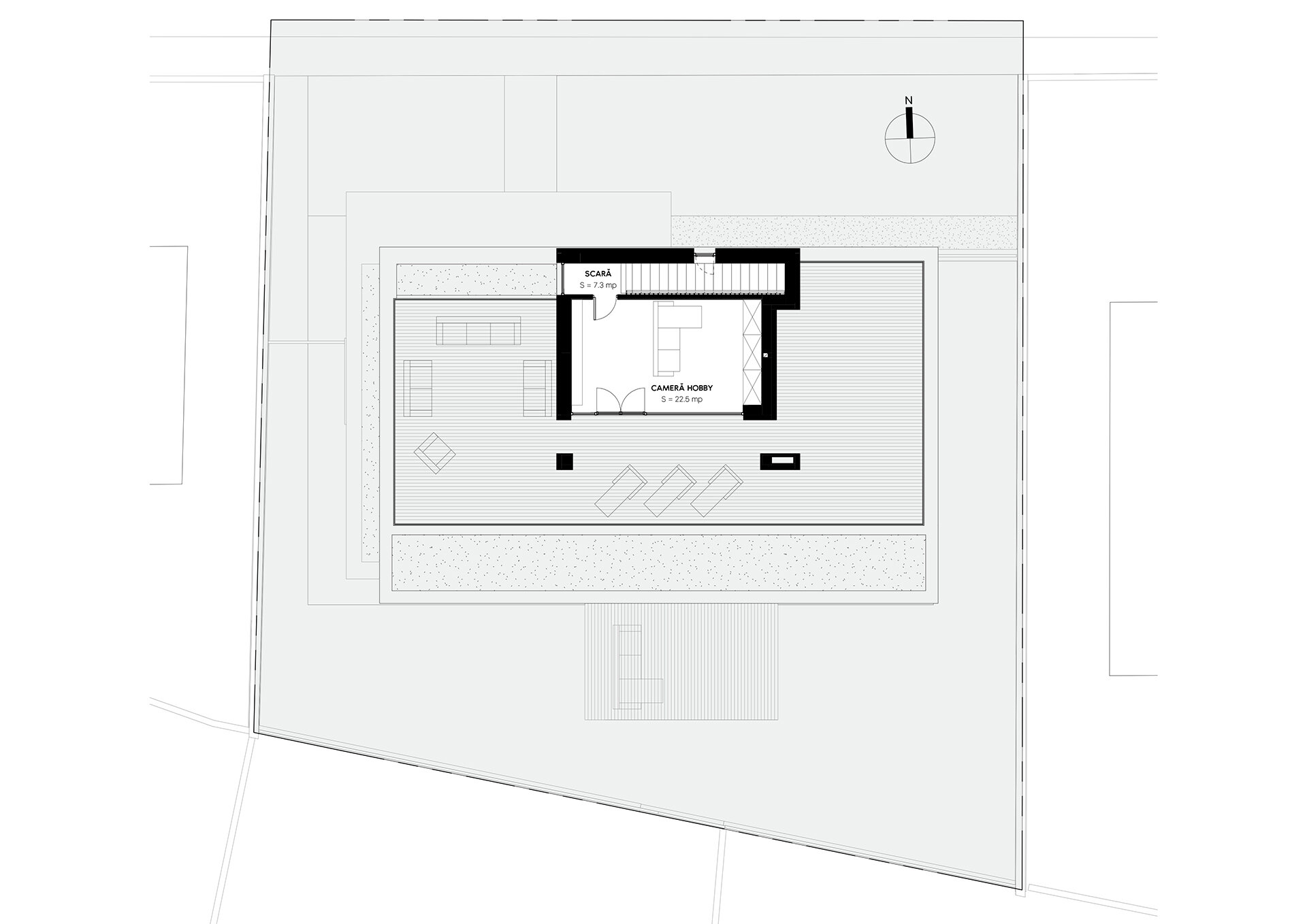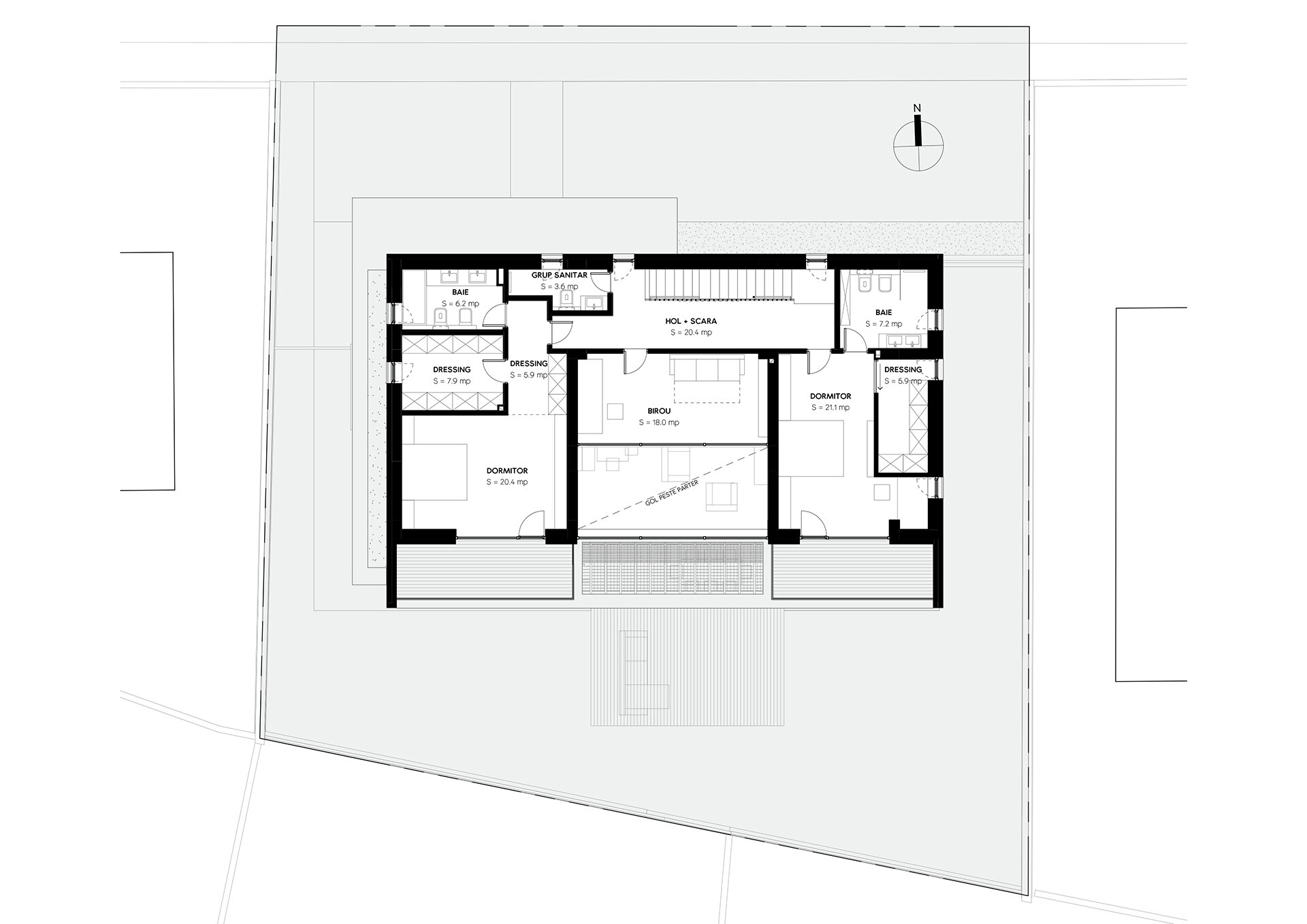 Așadar, proiectul propune rezolvarea spațială și volumetrică a temei primite de la beneficiari, sub forma unei locuințe care să profite cât mai mult de curte și de proximitatea față de pădure relaționând diferit cu împrejurimile.