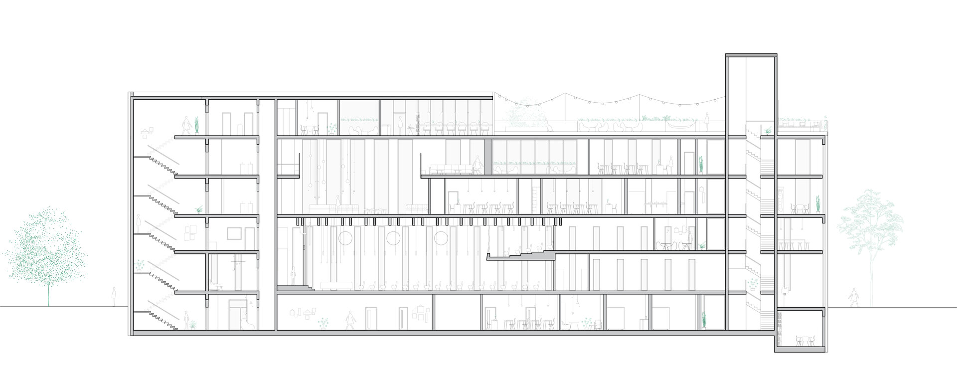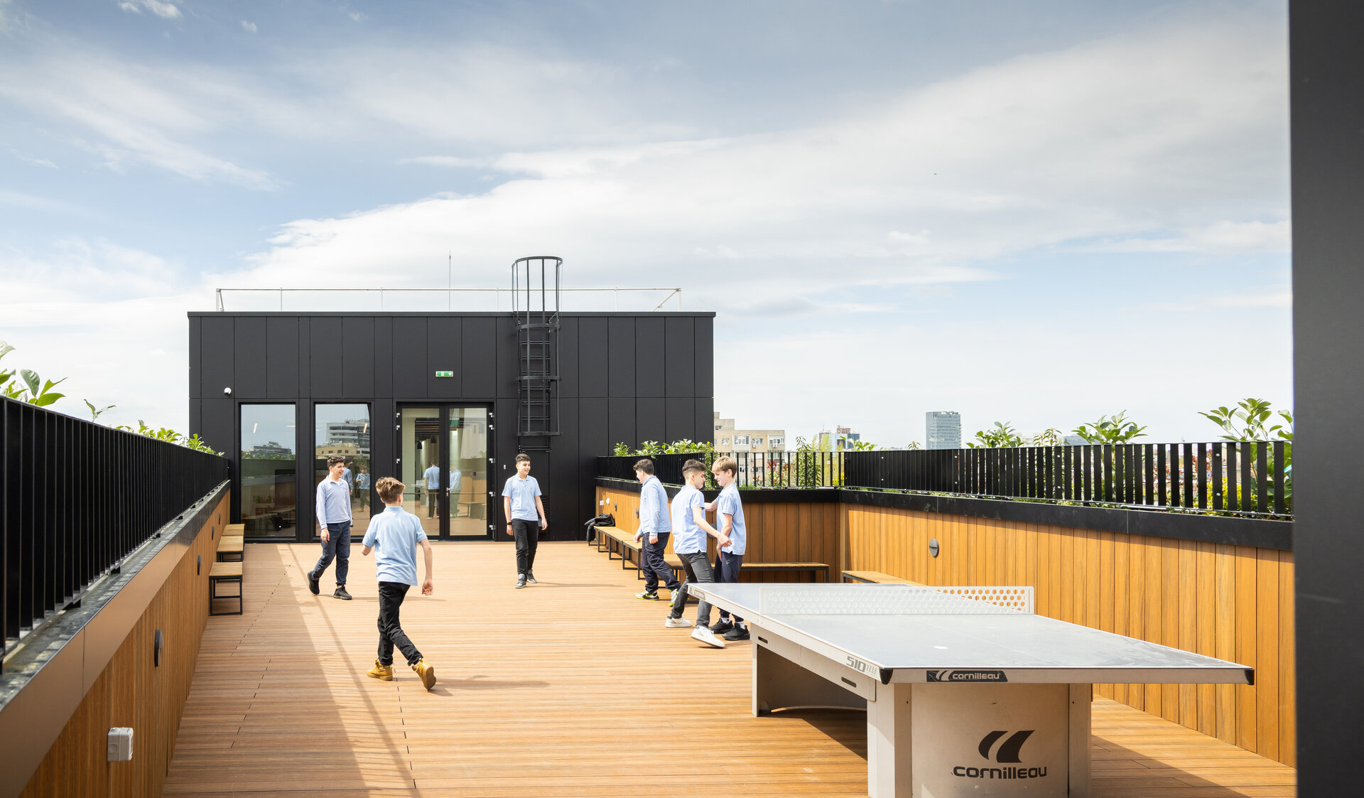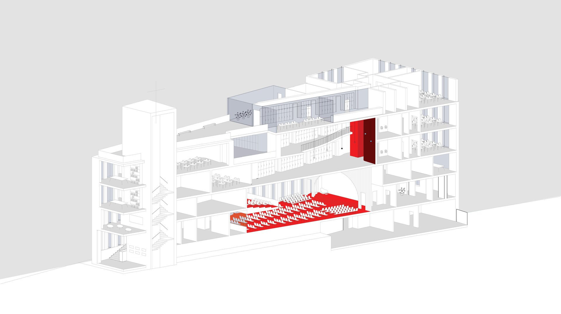 Terenul de vizavi va deveni curtea școlii, cu terenuri sportive și un centru comunitar multifuncțional, cu bucătărie, spații de ateliere și întâlniri. Proiectul a fost realizat integral din donații și campanii de strângere de fonduri, reflectând atașamentul profund al comunității. Astăzi, clădirea funcționează la capacitate maximă și găzduiește constant evenimente culturale, educaționale și comunitare, devenind un spațiu viu, integrat firesc în viața cartierului.