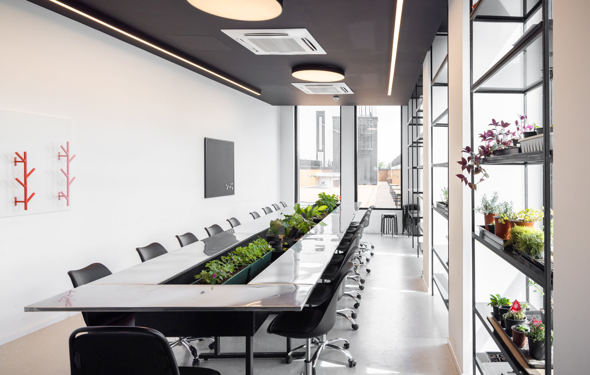 Clădirea adăpostește funcțiunile bisericii și ale școlii (clasele V–XII): laboratoare și sală de sport la demisol, birouri la mezanin, săli de clasă și funcțiuni educaționale complementare la etajele superioare. Sera, amplasată la ultimul nivel, oferă elevilor un spațiu educațional viu, unde pot învăța prin observație directă despre plante, ciclurile naturii și responsabilitatea față de mediu. În plus, mai multe încăperi sunt flexibile, partajabile între școală și biserică, datorită pereților mobili și infrastructurii adaptate. Clădirea este complet accesibilă persoanelor cu dizabilități.