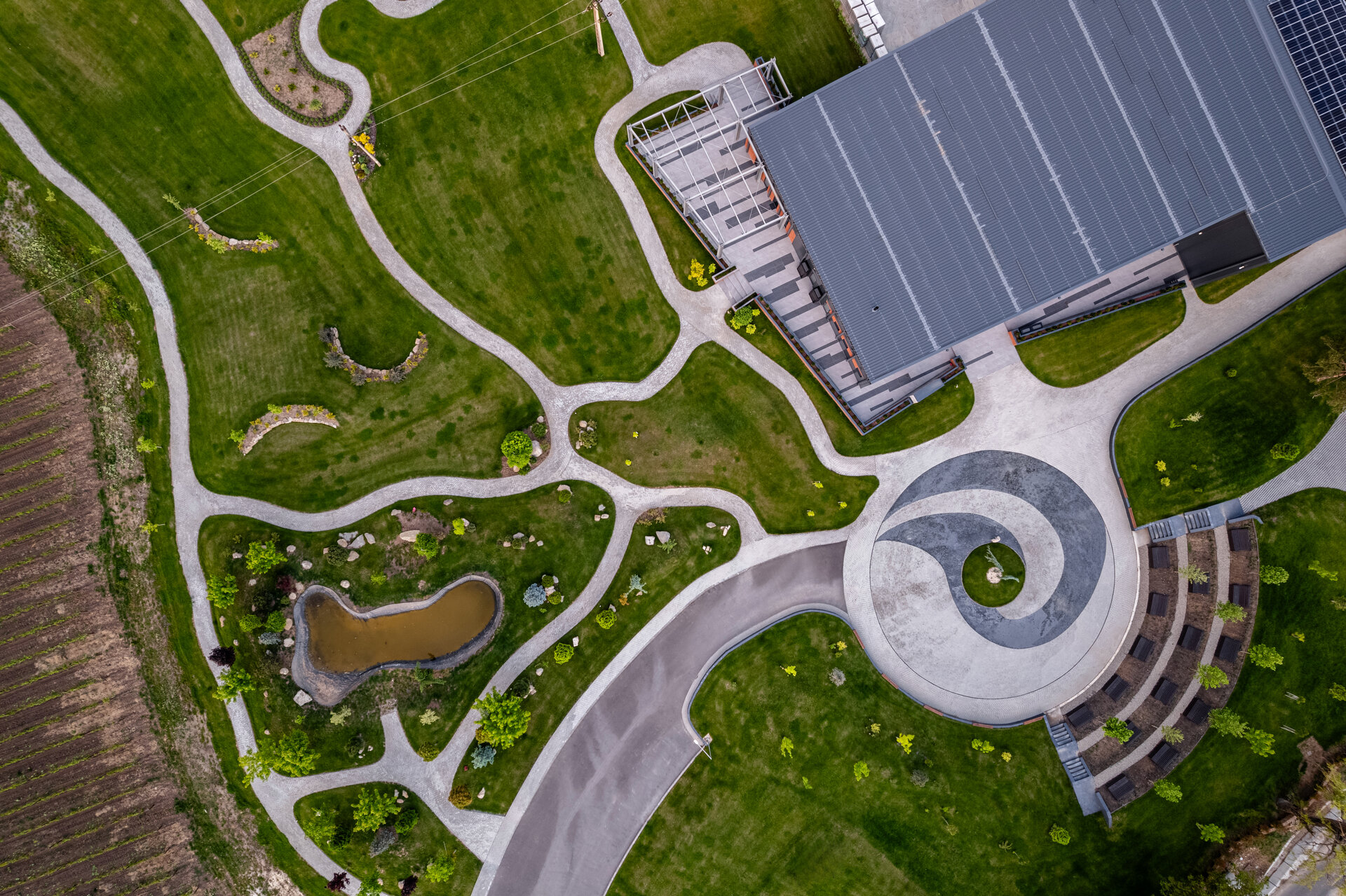 Exteriorul cramei a fost regândit ca o extensie publică – o promenadă cu potențial cultural, ce include un lac artificial și o zonă amfiteatru pentru evenimente. Reabilitarea beciului istoric completează povestea, oferind un spațiu dedicat maturării vinurilor sau evenimentelor tematice. În această etapă, am urmărit păstrarea autenticității și integrarea subtilă în peisaj.