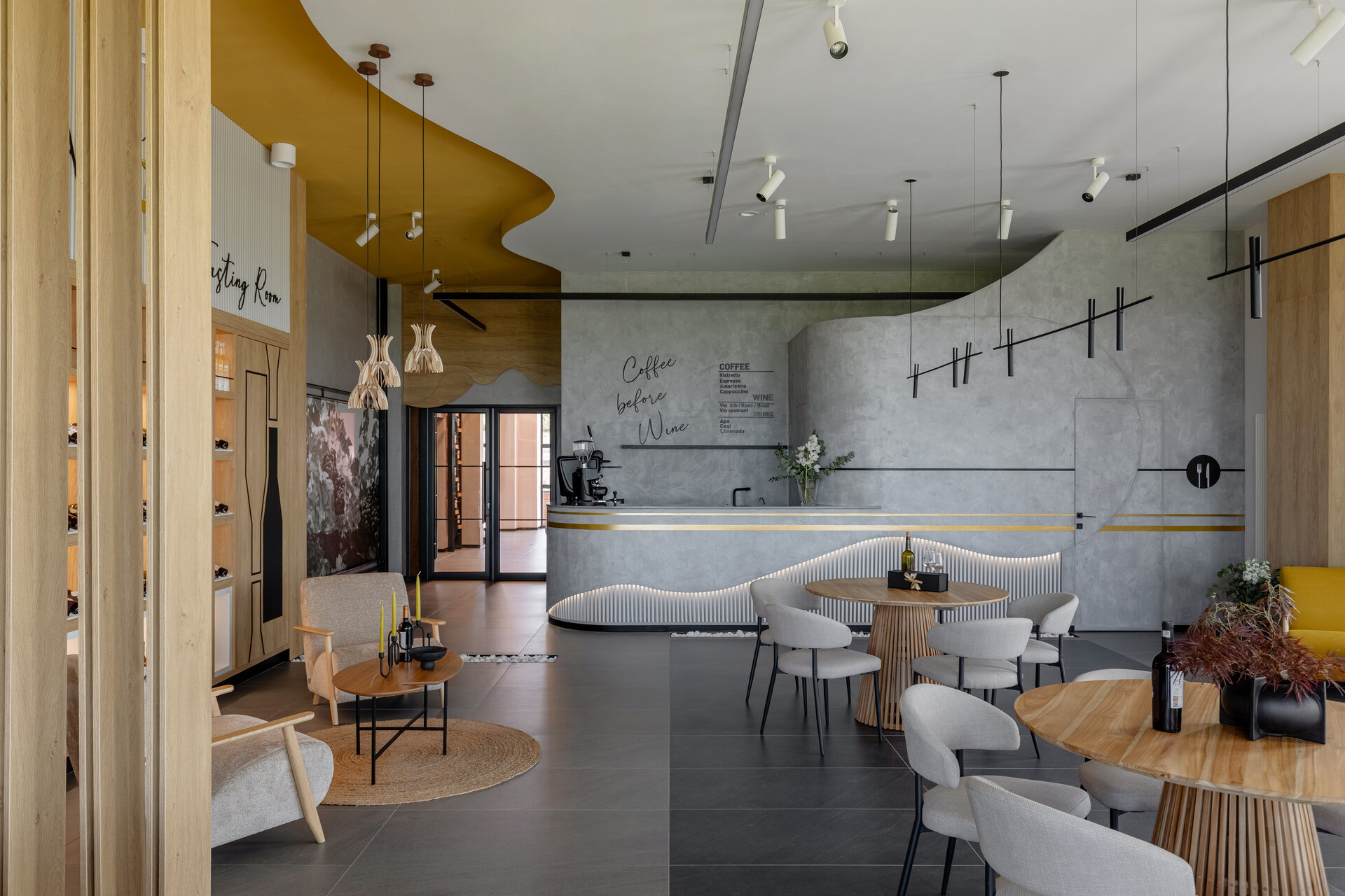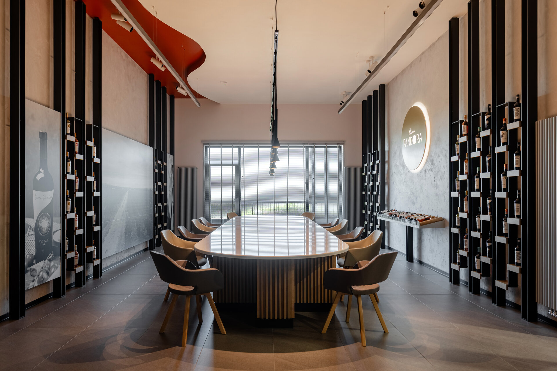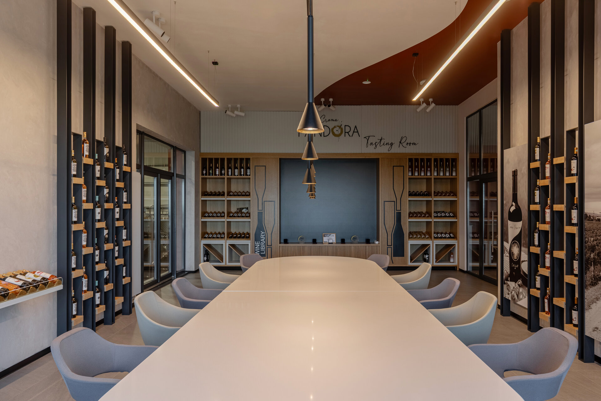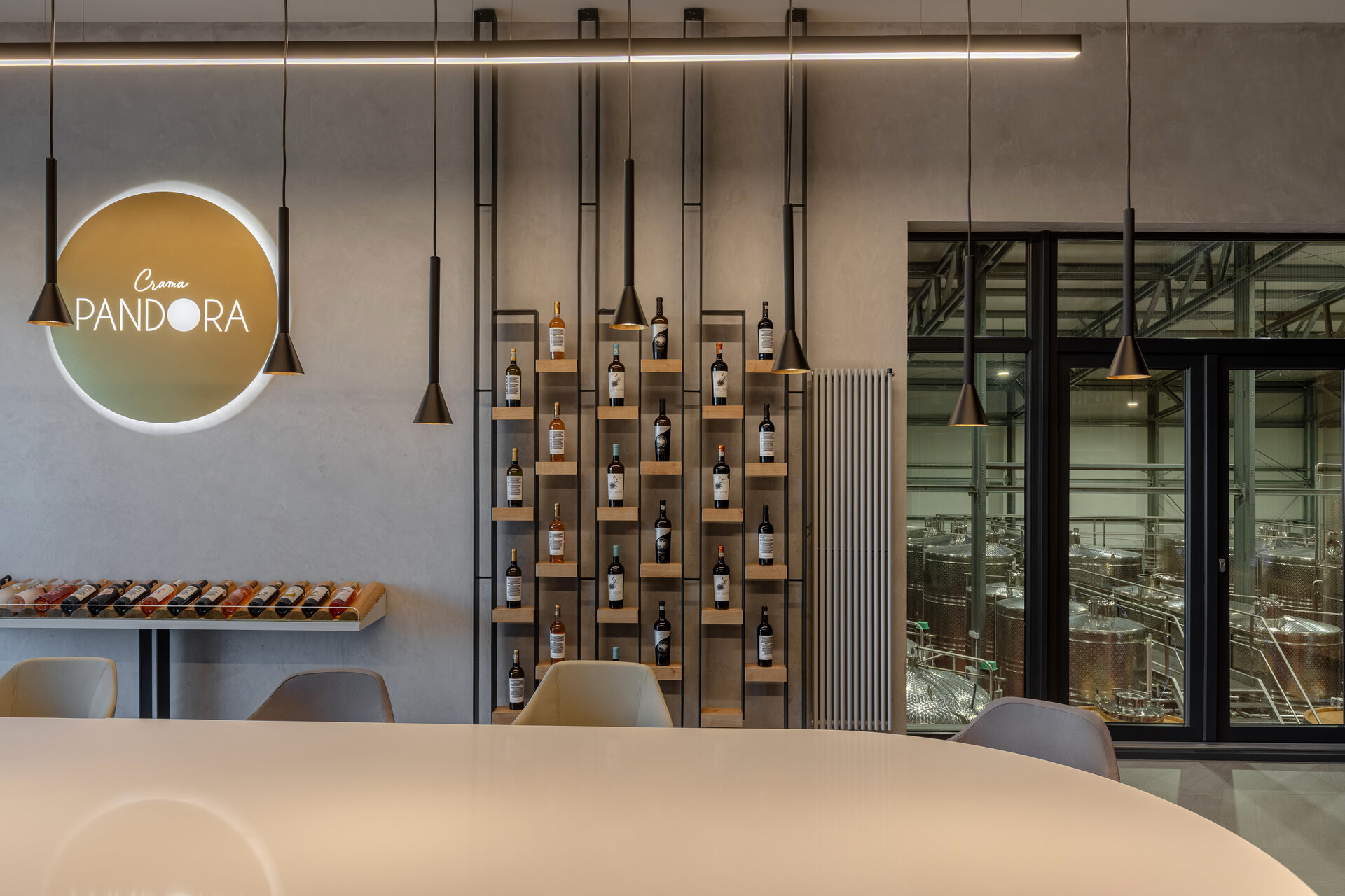 Crama Pandora propune o experiență senzorială completă, în care arhitectura de interior devine mediu de expresie pentru valorile vinului: profunzime, echilibru și rafinament. Proiectul, semnat de OMEGA INTERIOR DESIGN AND ARCHITECTURE, explorează sinergia dintre tradiția viticolă și un limbaj contemporan de design, printr-o compoziție coerentă de materiale, lumină și spațialitate.