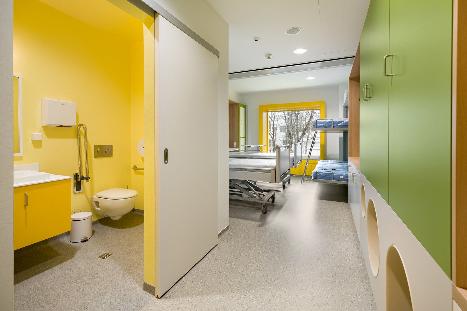 Clădirea este organizată pe orizontală, fiecare nivel simbolizând o parte a ecosistemului unui copac, cu o faună specifică fiecărei zone, creând o poveste în care natura se îmbină cu funcționalitatea medicală. La nivelul subteran, care găzduiește secția de RX, regăsim cârtițele, simboluri ale protecției și intimității, un spațiu discret care oferă siguranță. Primul nivel, destinat unității de primiri urgențe (UPU) și camerelor de primire a pacienților, este reprezentat de iepurași, care aduc confort și căldură, esențiale în momentele de evaluare și îngrijire inițială.