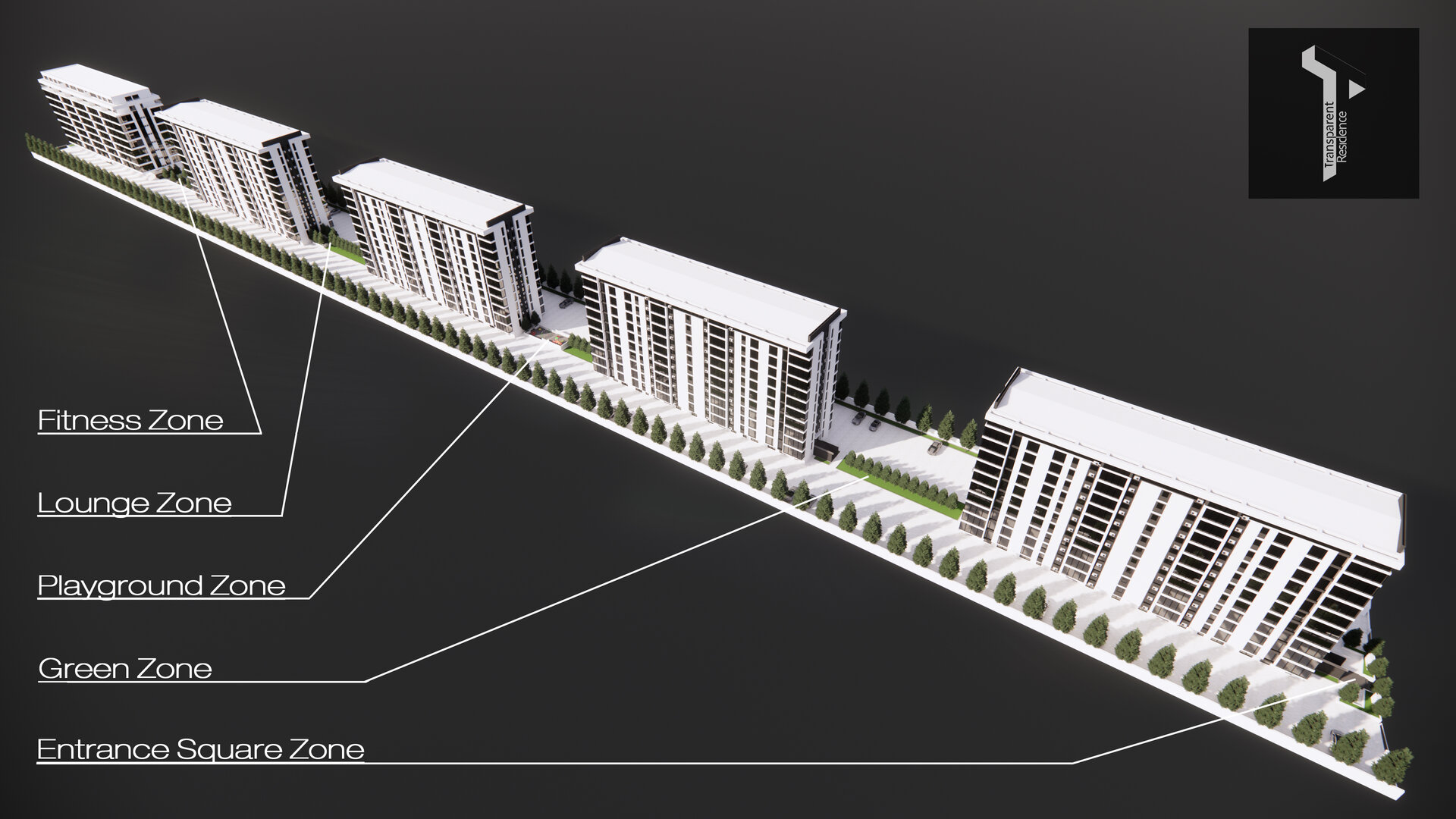 Intervenția de design propusă în cadrul ansamblului rezidențial Transparent Residence vine să completeze arhitectura existentă cu un sistem coerent de amenajare a spațiului exterior, care aduce funcționalitate și un plus de identitate vizuală ansamblului. Deși proiectul de arhitectură al blocurilor a fost realizat de un birou separat, conceptul de design urban și peisagistic dintre clădiri — precum și tratamentul spațiilor de acces — a fost elaborat ca o extensie contemporană a imaginii generale, cu o atenție specială pentru detalii, iluminat și materialitate.