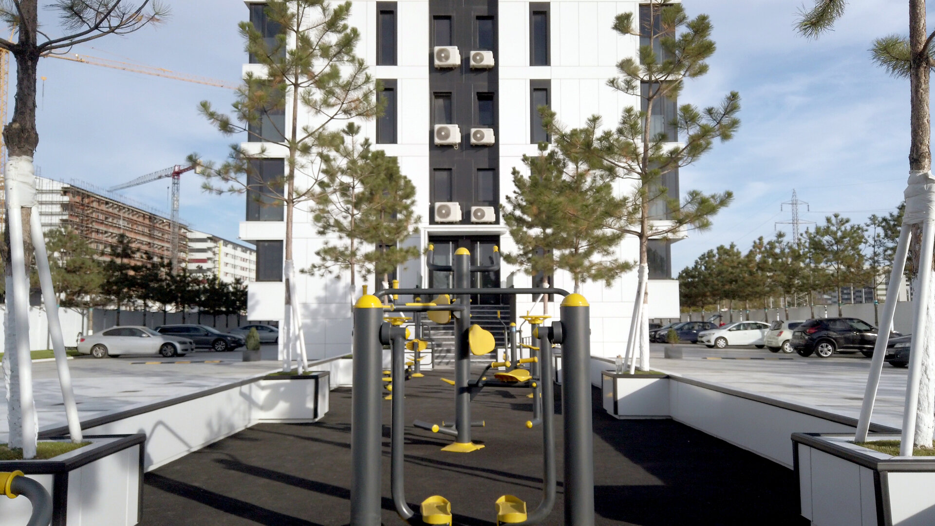 • Între blocul 4 și 5: zonă de fitness urban, complet echipată cu aparate de sport, delimitată de parapeti iluminati și arbori cu înălțime medie pentru filtrarea luminii solare.