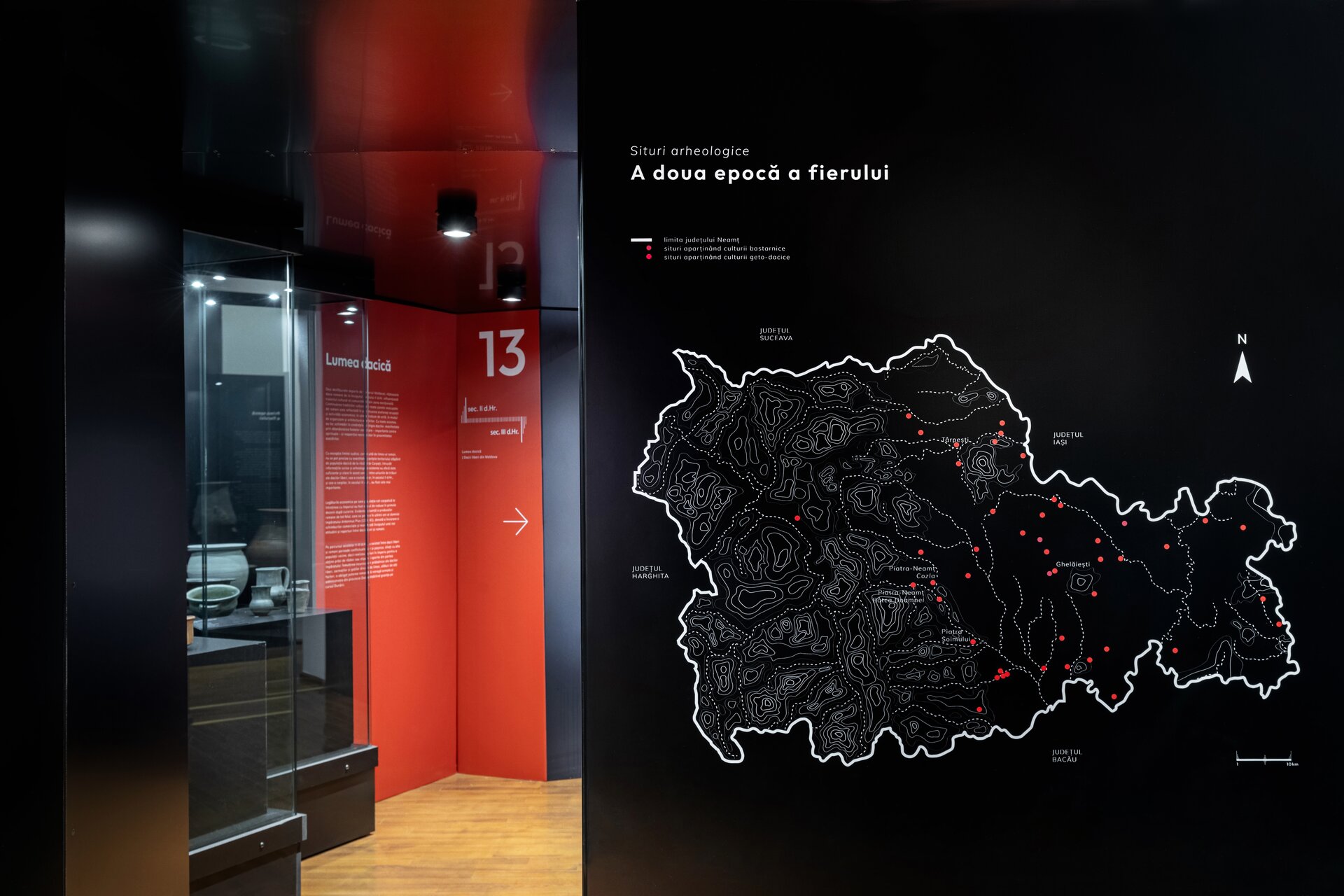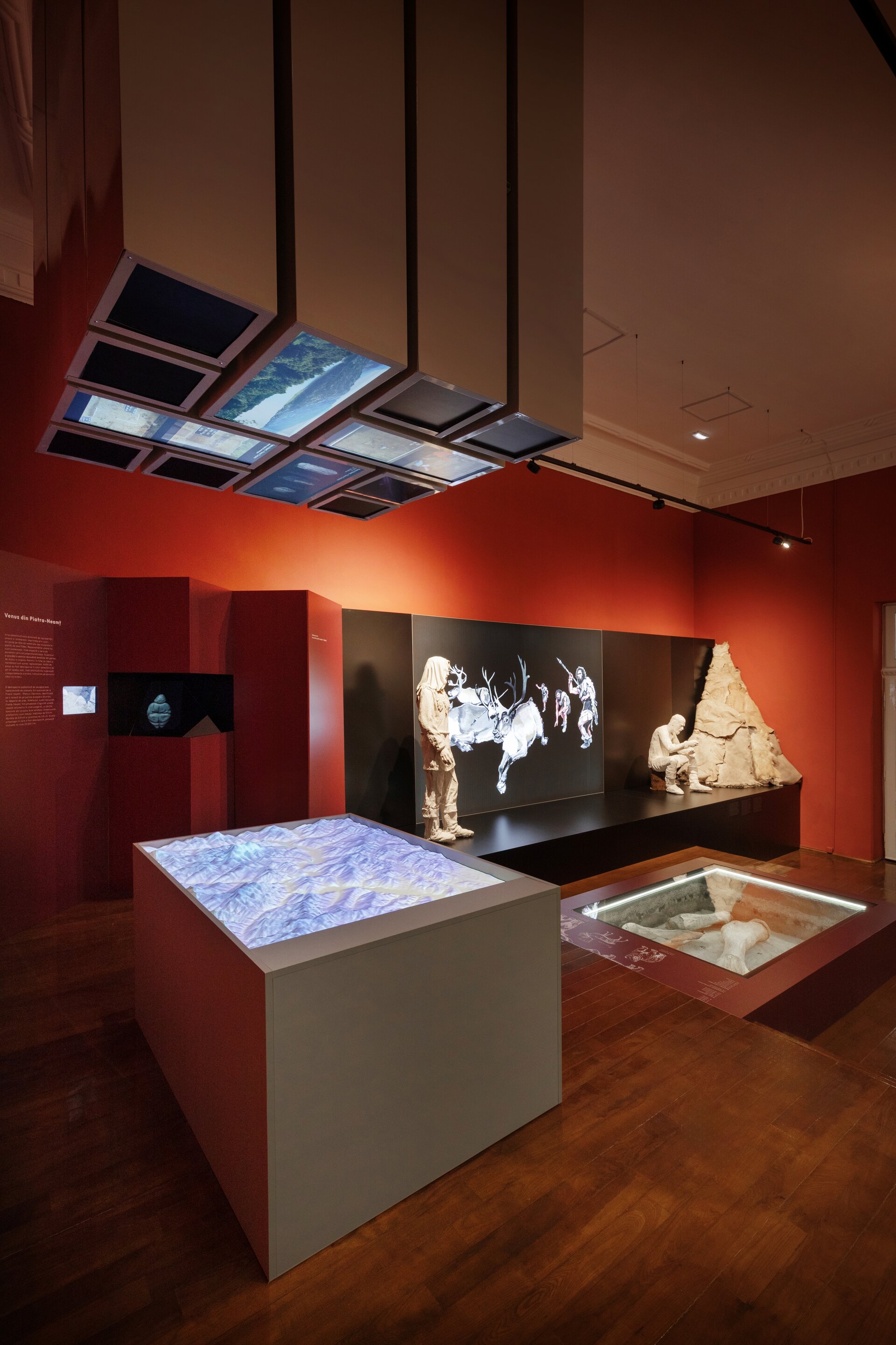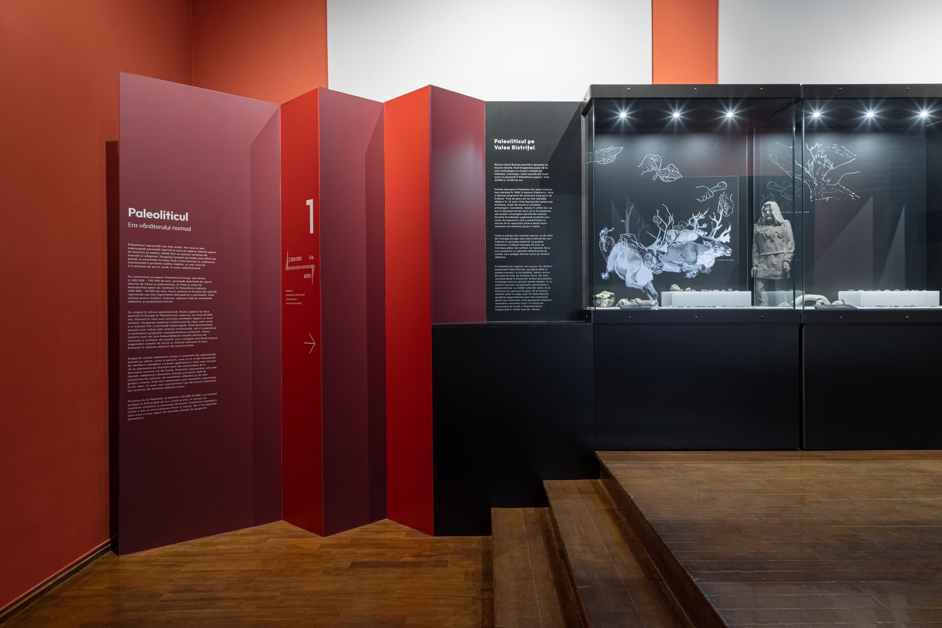 Acest parietal devine elementul dominant de compoziție și este punctat pe alocuri de reconstiruiri la scară mare precum o locuință neolitică, cuptor sau un atelier de metalurgie, iar parte din acestea sunt și manechinele realizate în mod intenționat monocrom pentru a pune în valoare activitățile specifice legate de vânătoare sau realizarea uneltelor. Modurile de expunere tradiționale sunt completate de macheta cu Valea Bistriței din prima sală pe care sunt proiectate informații în tandem cu monitoare suspendate deasupra acesteia sau videoproiecție pe perete alături de text explicativ pe holuri. Alături de un design grafic de actualitate, expoziția își propune să redea comunității un muzeu modern și atractiv.