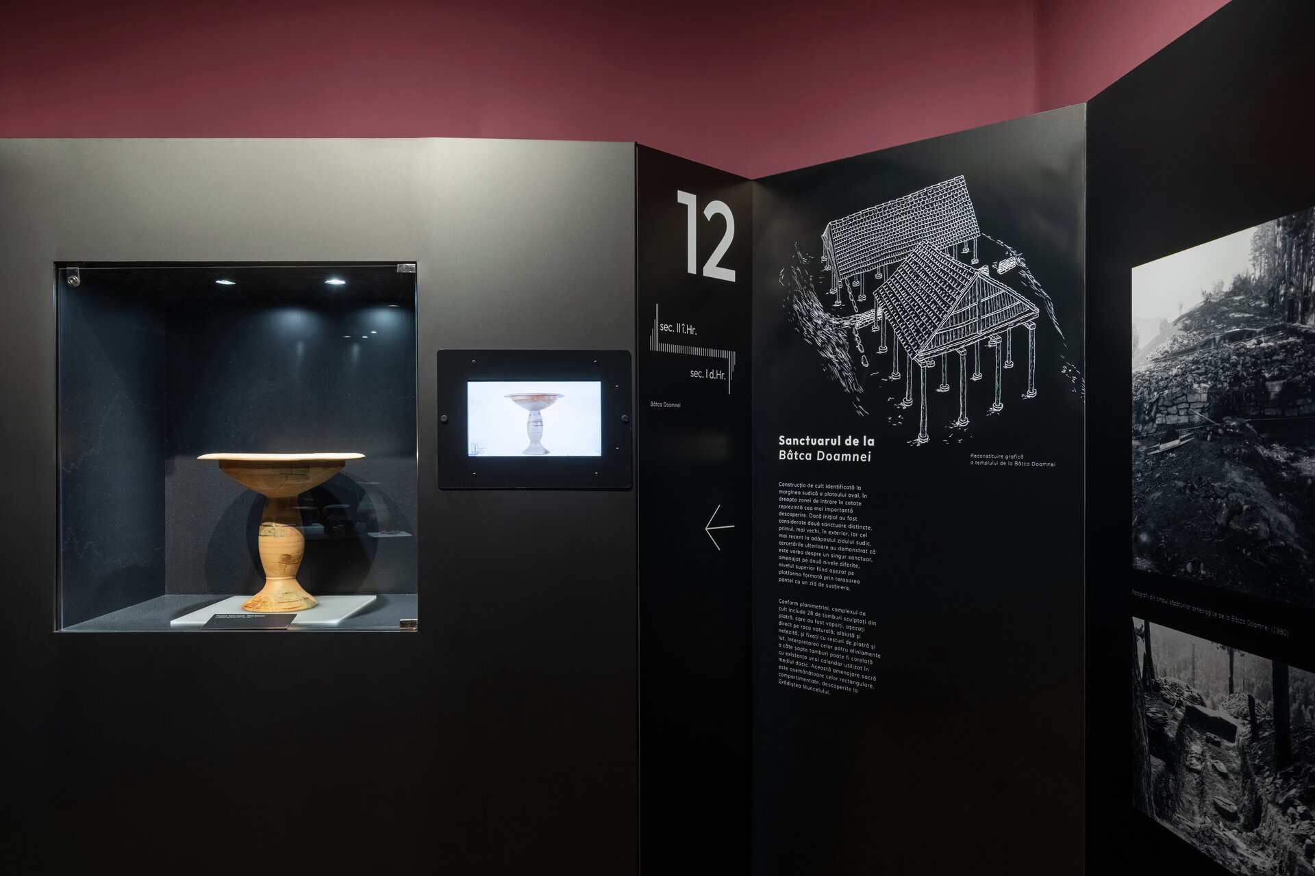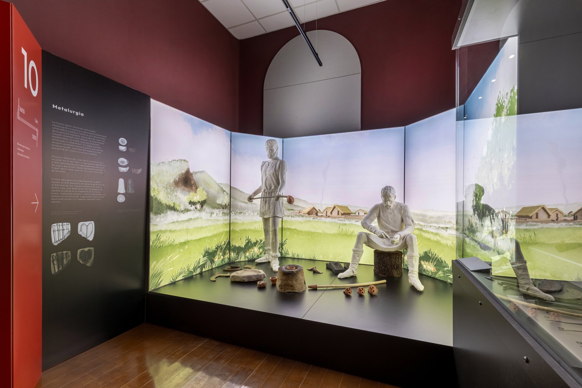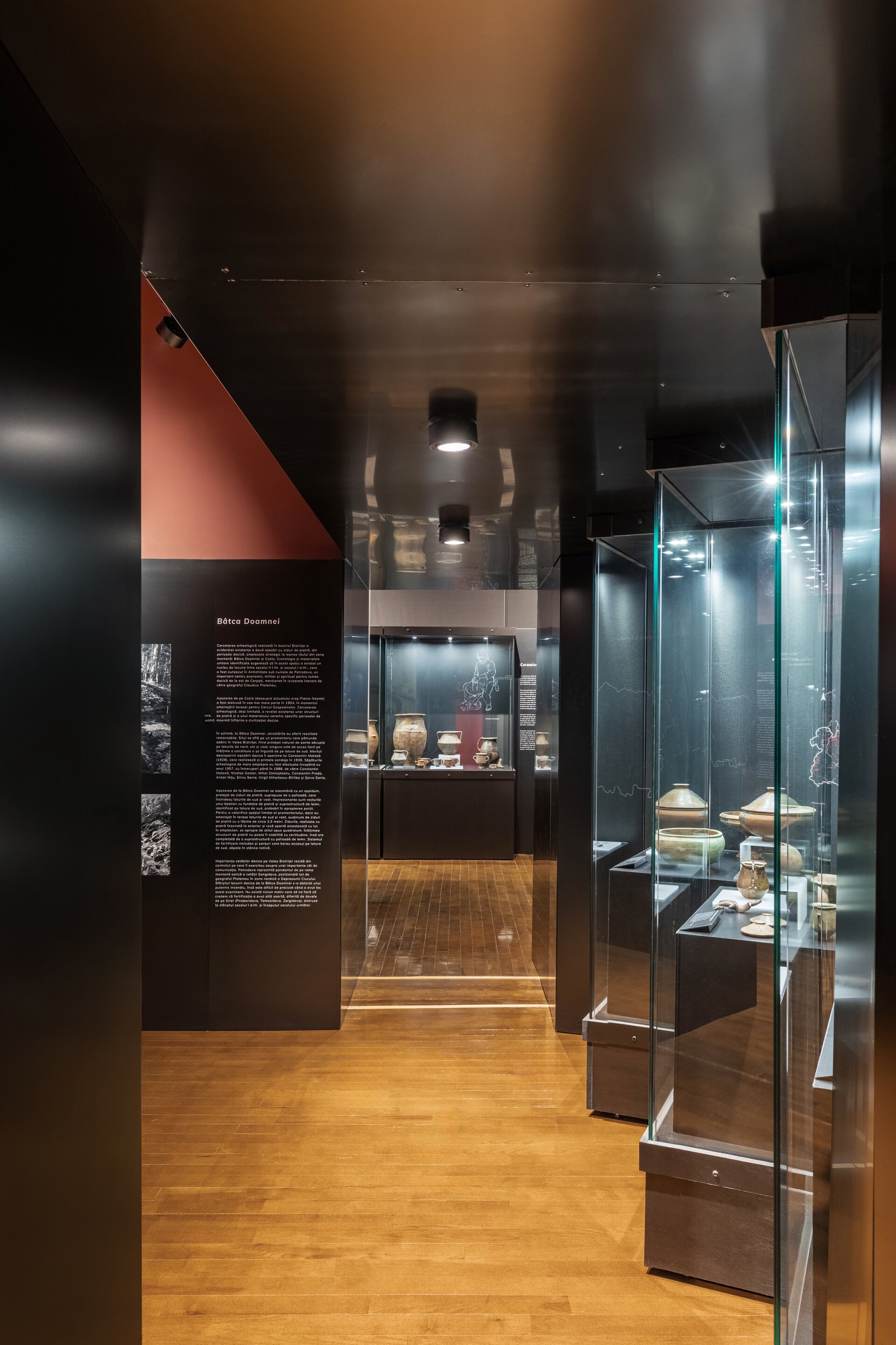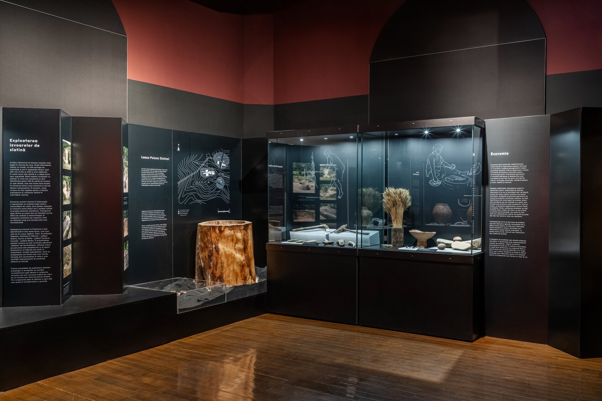 Acest parietal devine elementul dominant de compoziție și este punctat pe alocuri de reconstiruiri la scară mare precum o locuință neolitică, cuptor sau un atelier de metalurgie, iar parte din acestea sunt și manechinele realizate în mod intenționat monocrom pentru a pune în valoare activitățile specifice legate de vânătoare sau realizarea uneltelor. Modurile de expunere tradiționale sunt completate de macheta cu Valea Bistriței din prima sală pe care sunt proiectate informații în tandem cu monitoare suspendate deasupra acesteia sau videoproiecție pe perete alături de text explicativ pe holuri. Alături de un design grafic de actualitate, expoziția își propune să redea comunității un muzeu modern și atractiv.